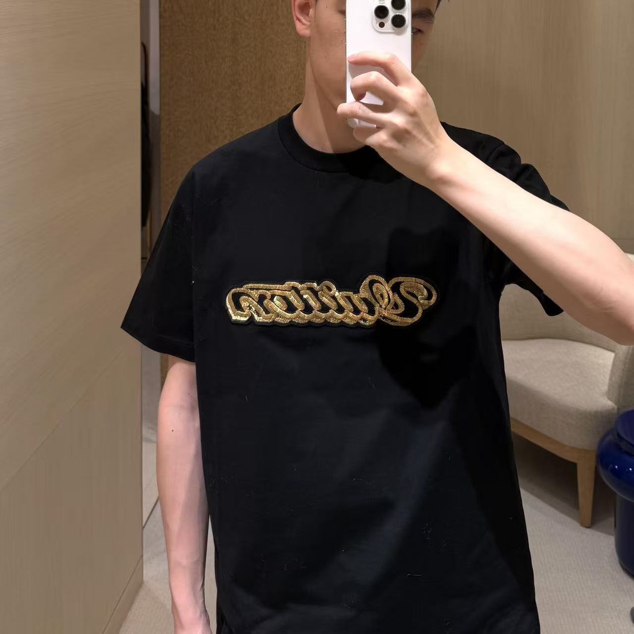 這次分享的珠片章仔圓領短袖,將視覺重心放在了光影折射的變化上。透過胸前與背部截然不同的複合材質刺繡,打破了素色 T 恤的單調,轉而展現出一種內斂卻充滿張力的街頭奢華美學。