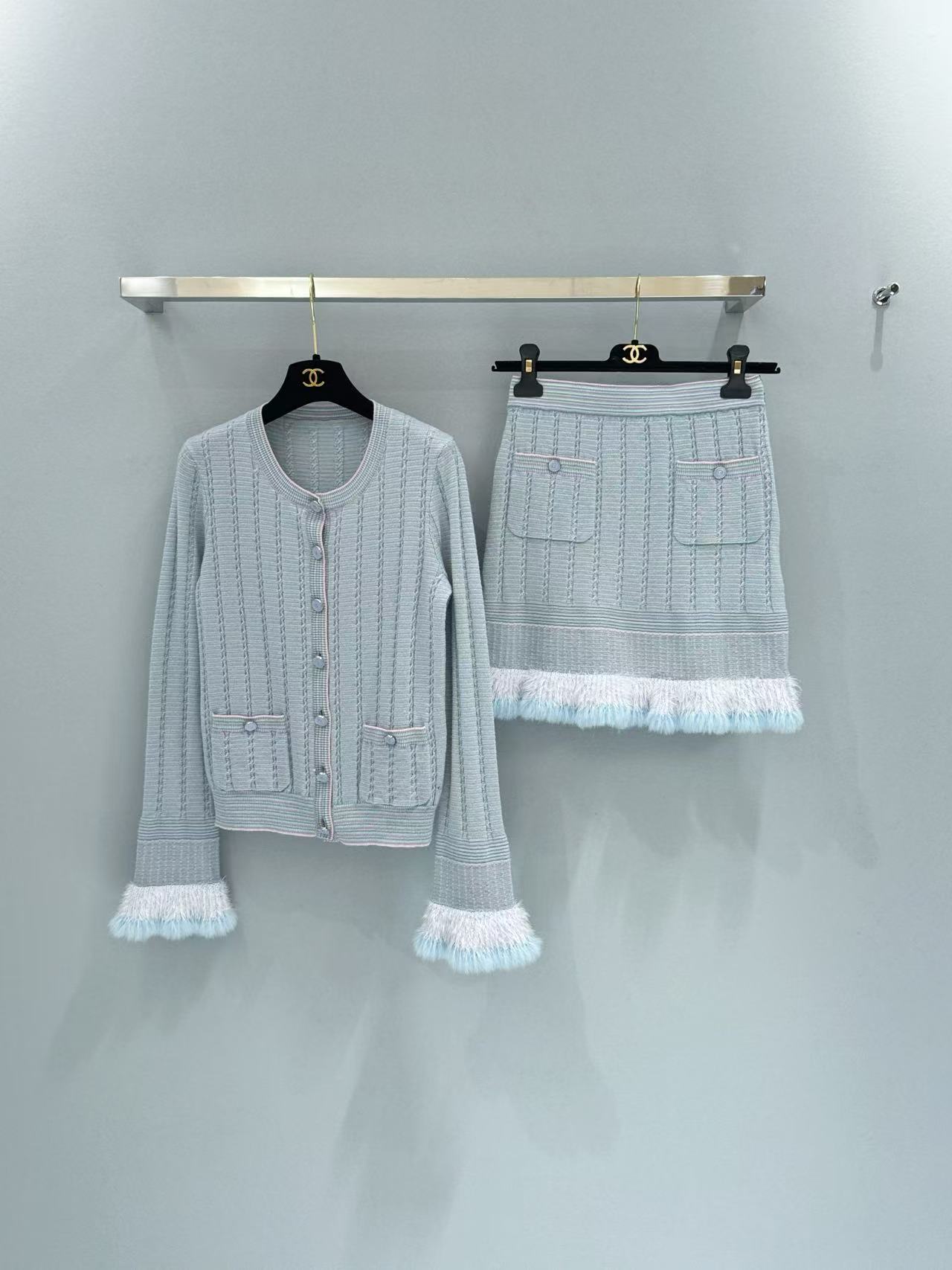 2025早秋 C家 喇叭荷葉袖拼毛開衫