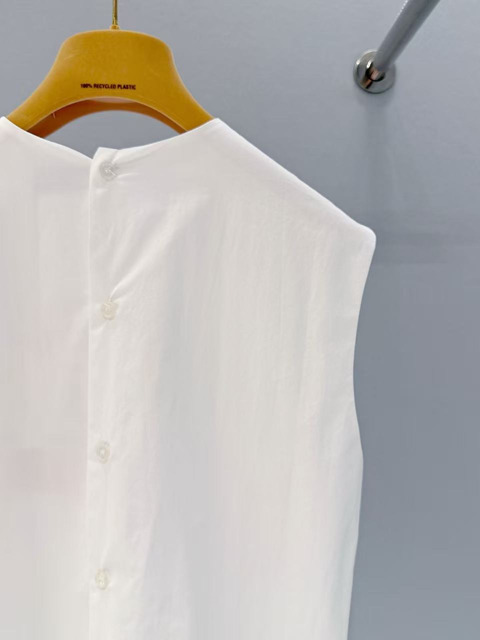 進口純棉府綢複合材質: 嚴選進口等級材質,觸感親膚柔軟,卻同時擁有極佳的挺括度,能撐起立體的背心版型,不會軟塌無神。