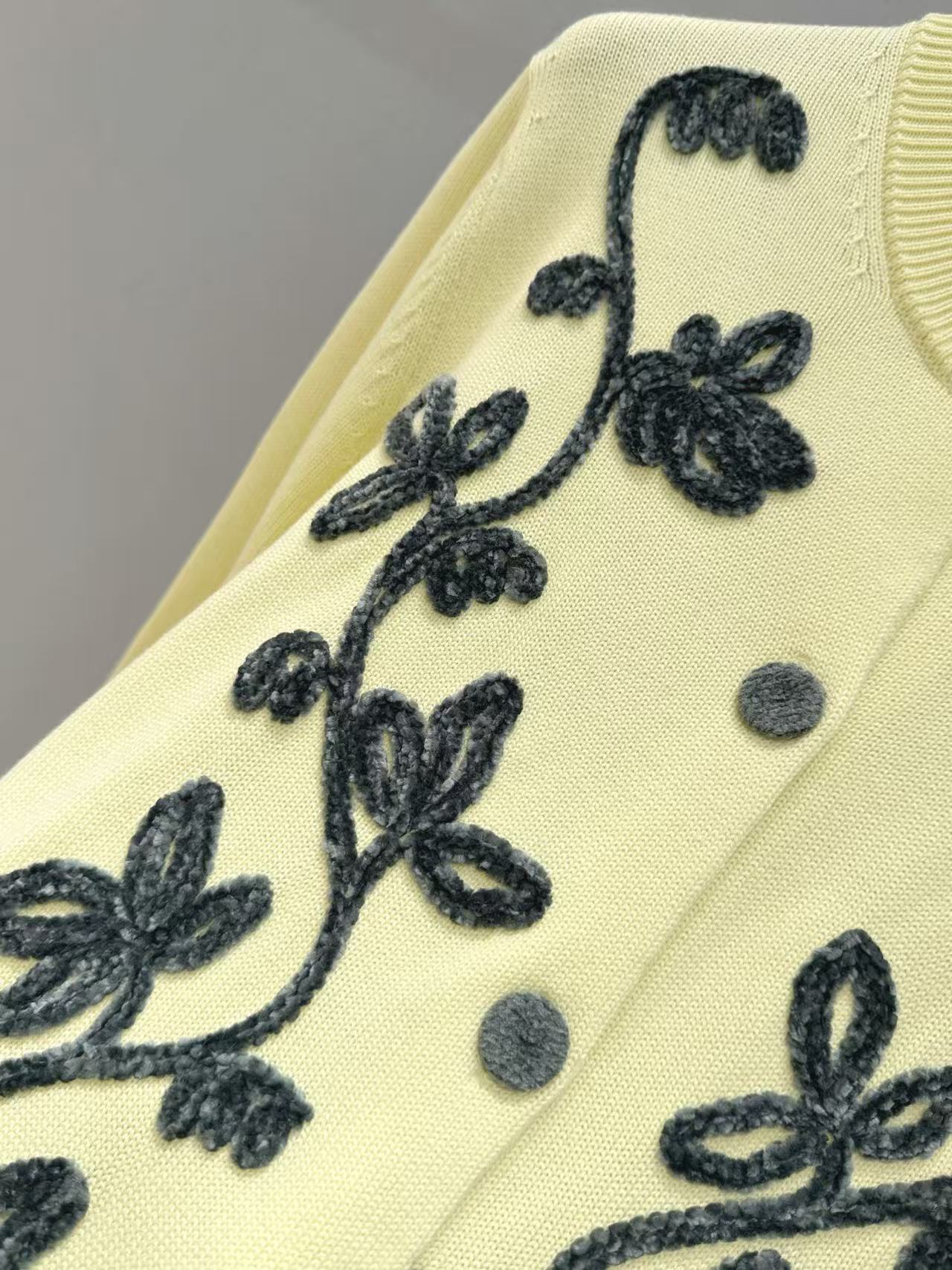 整件是滿版的立體花朵提花,遠看低調內斂,近看超級精緻,帶著滿滿的法式温柔高級感~版型是微寬鬆的落肩設計,