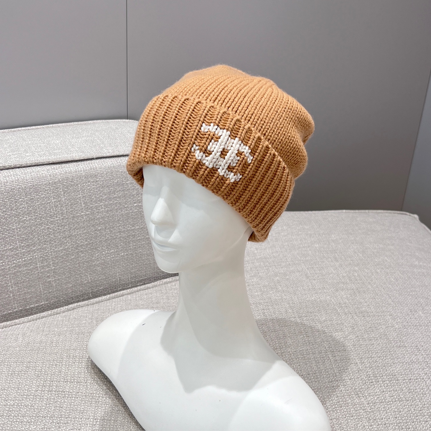 搭配手工刺繡的字母 Logo,線條俐落、針腳細緻,一看就知道不是普通針織帽,細節自然流露高級感。