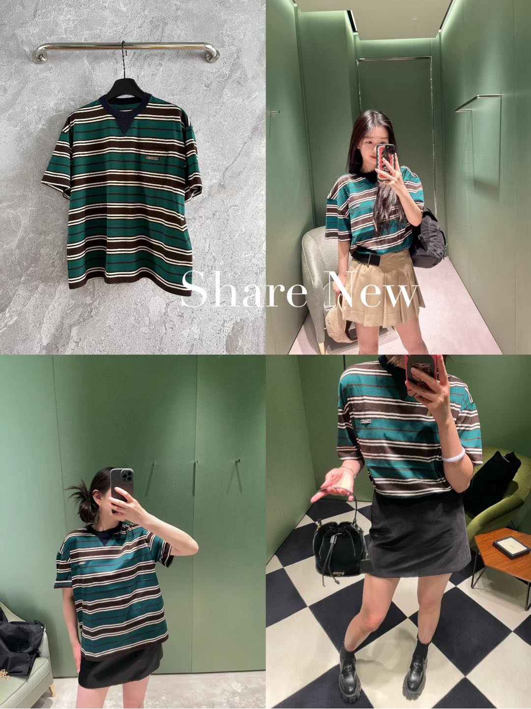 2024秋冬新品 P家綠色條紋短袖