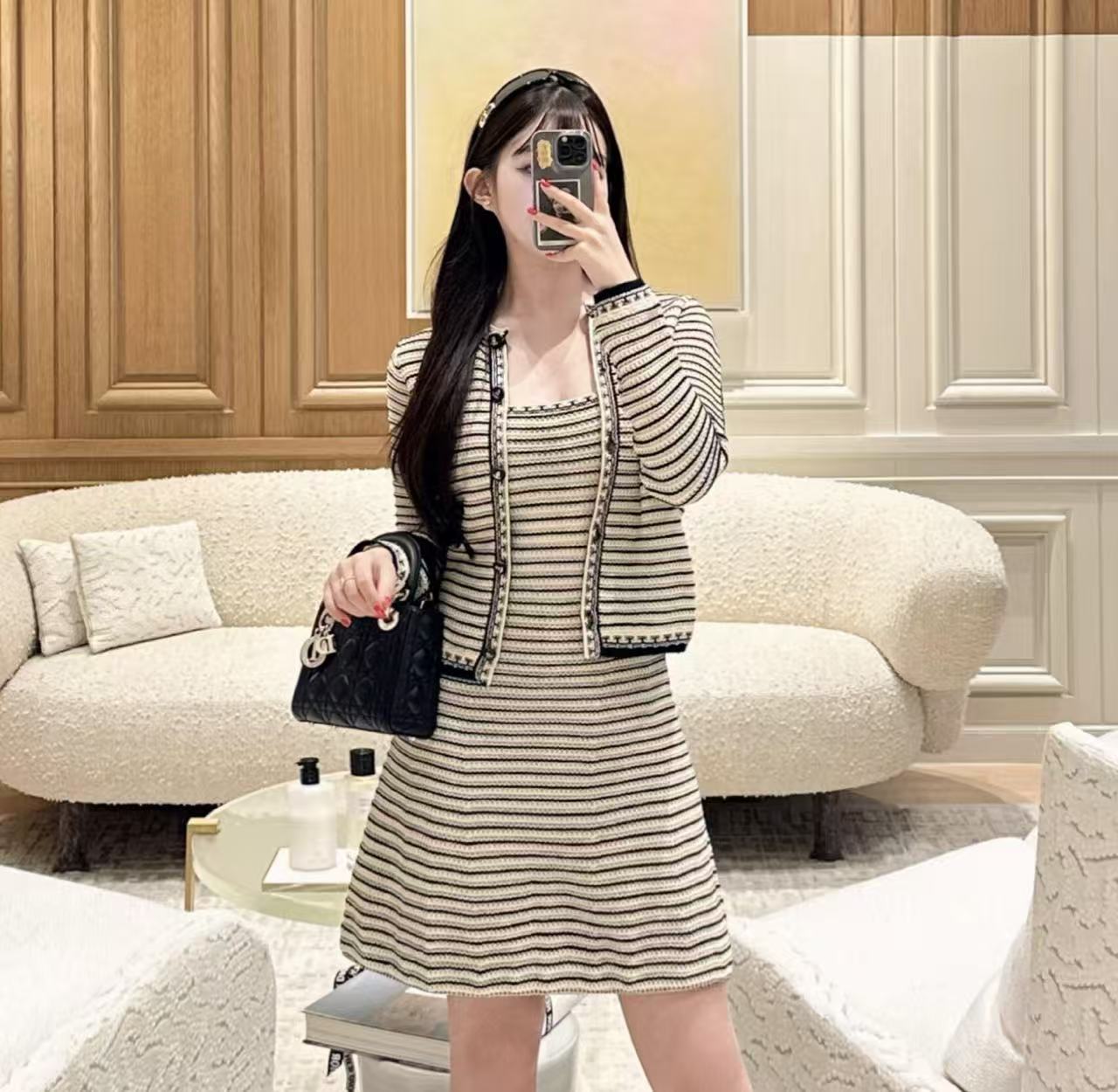 2026早春 D家 船錨鈕扣條紋針織連身裙