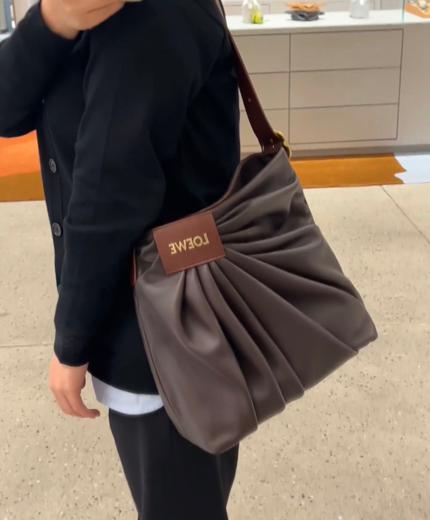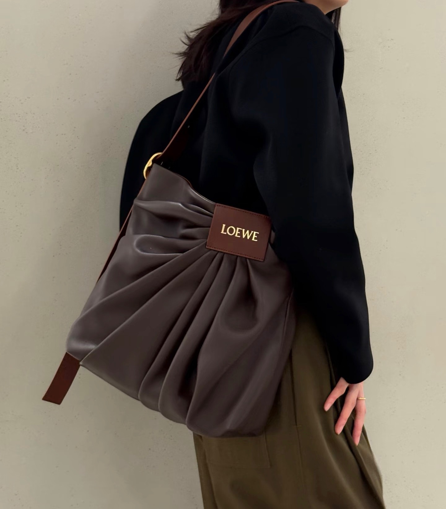 整體包型自然垂墜、不刻意卻非常有態度,搭配細緻的褶皺輪廓與低調質感的 Logo 皮牌,呈現出一種「不張揚卻很懂穿」的時髦氛圍。