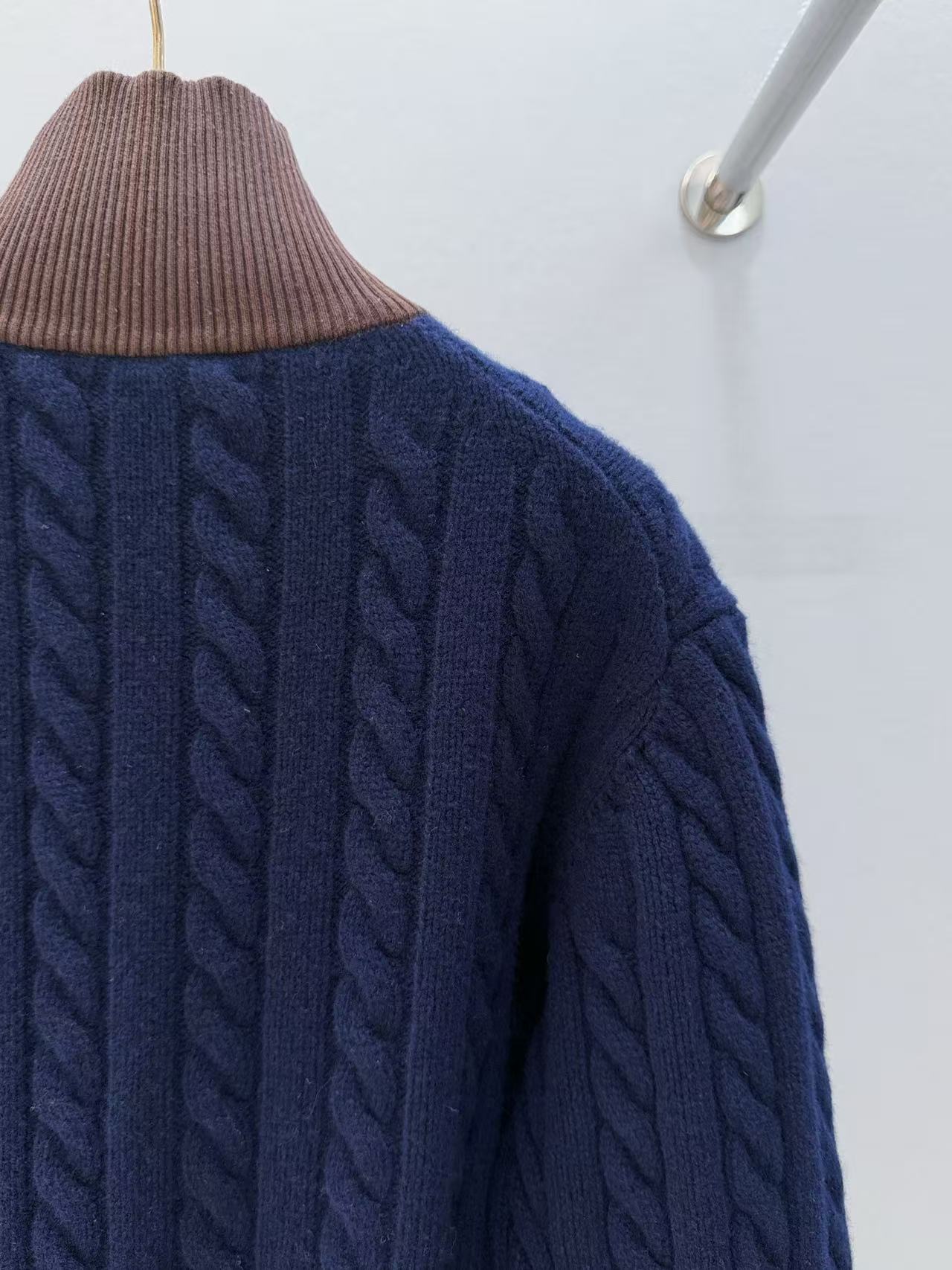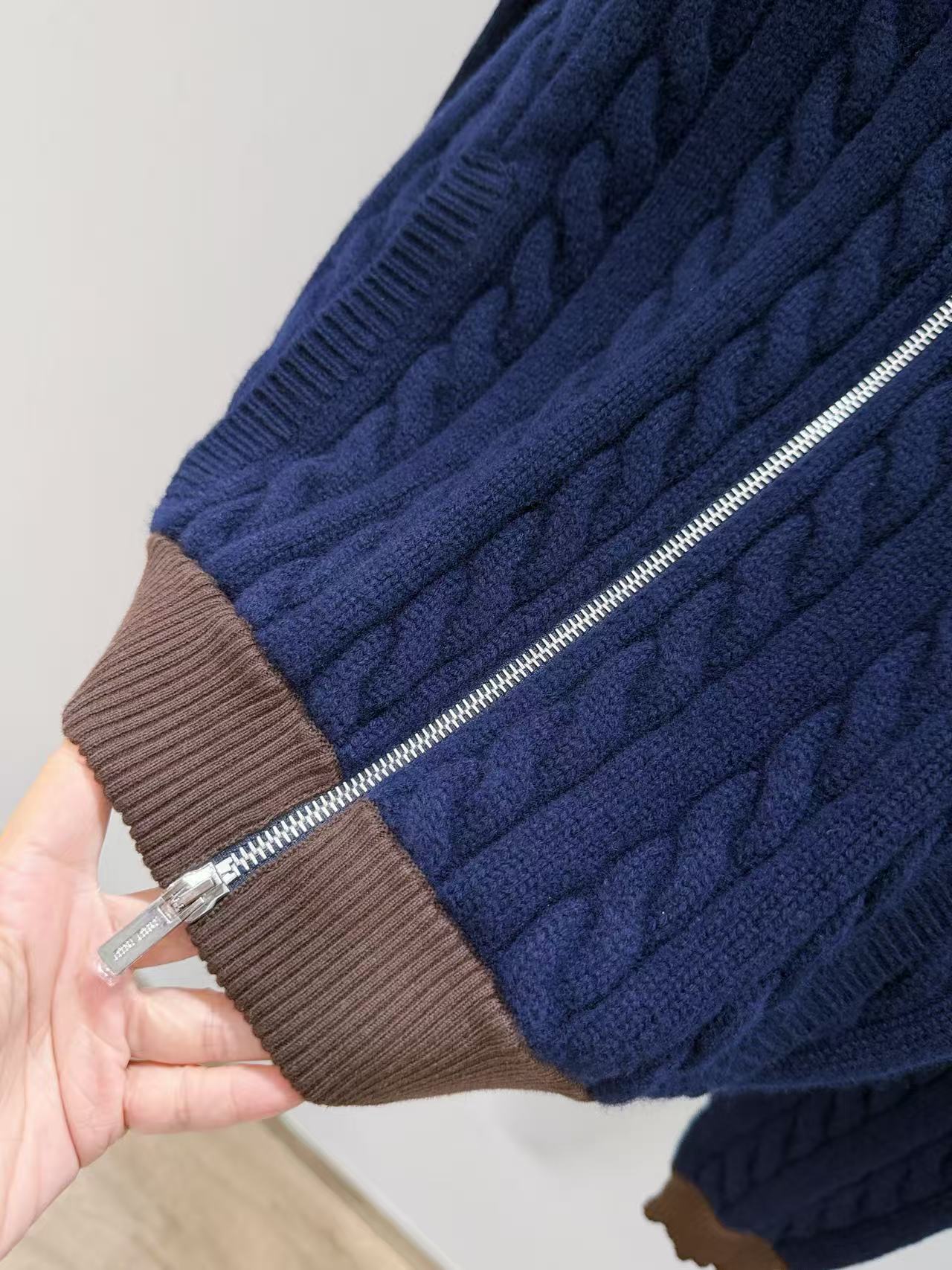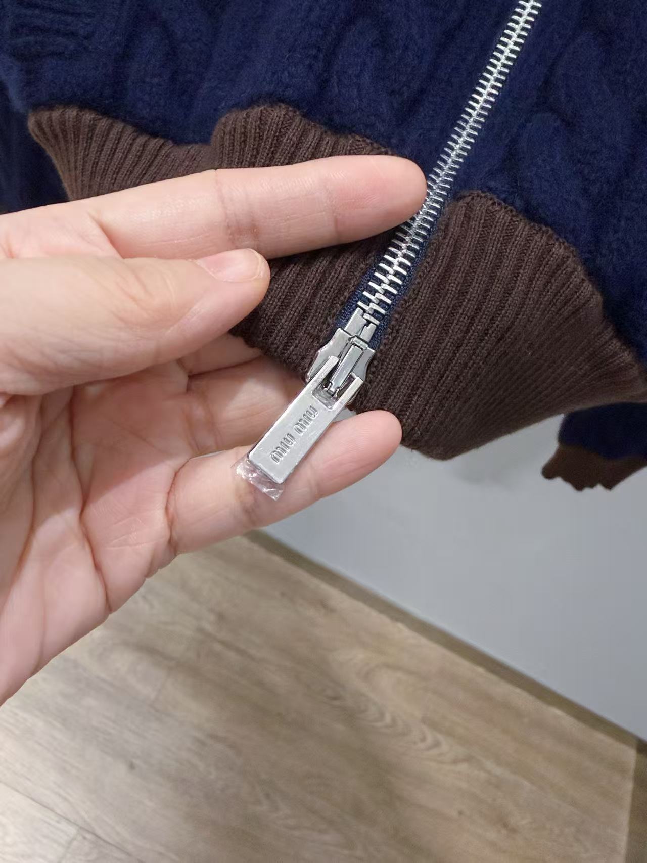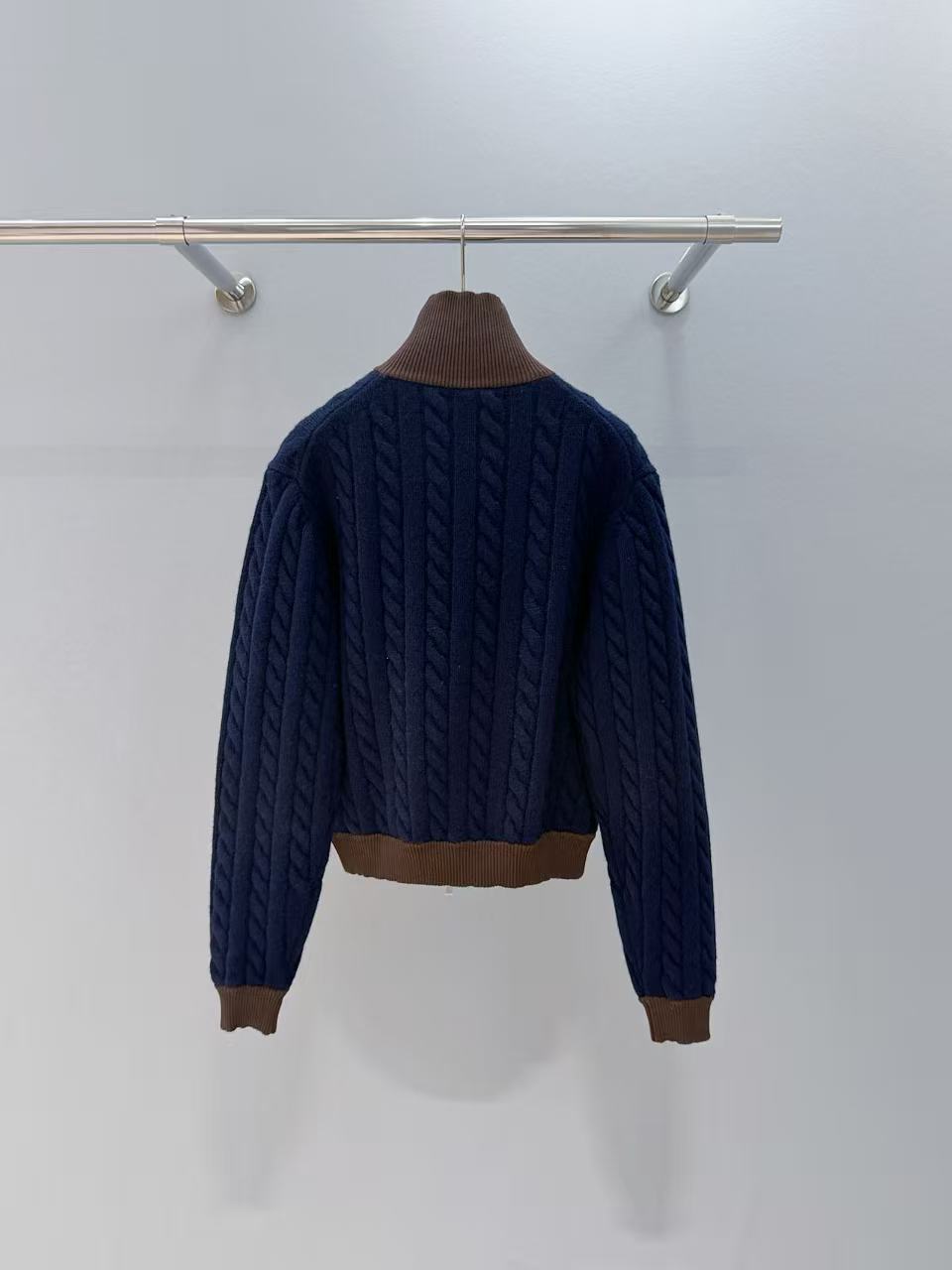 2025早秋 Miu家 棕色撞色針織立領拉鏈外套