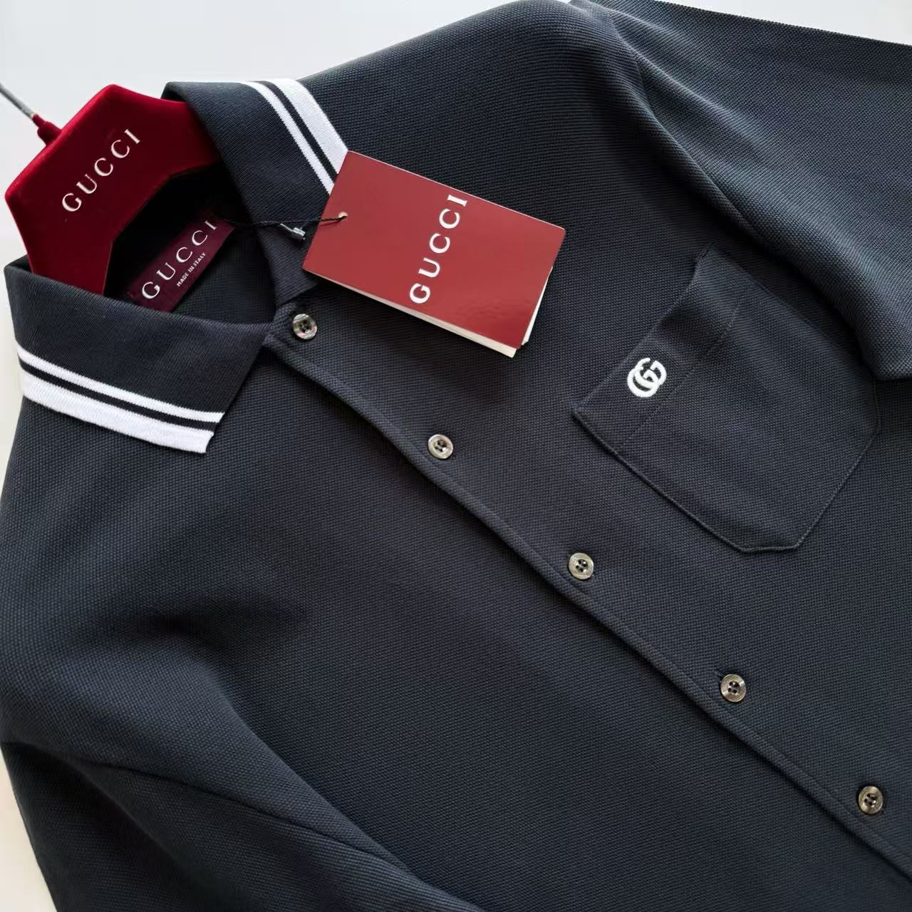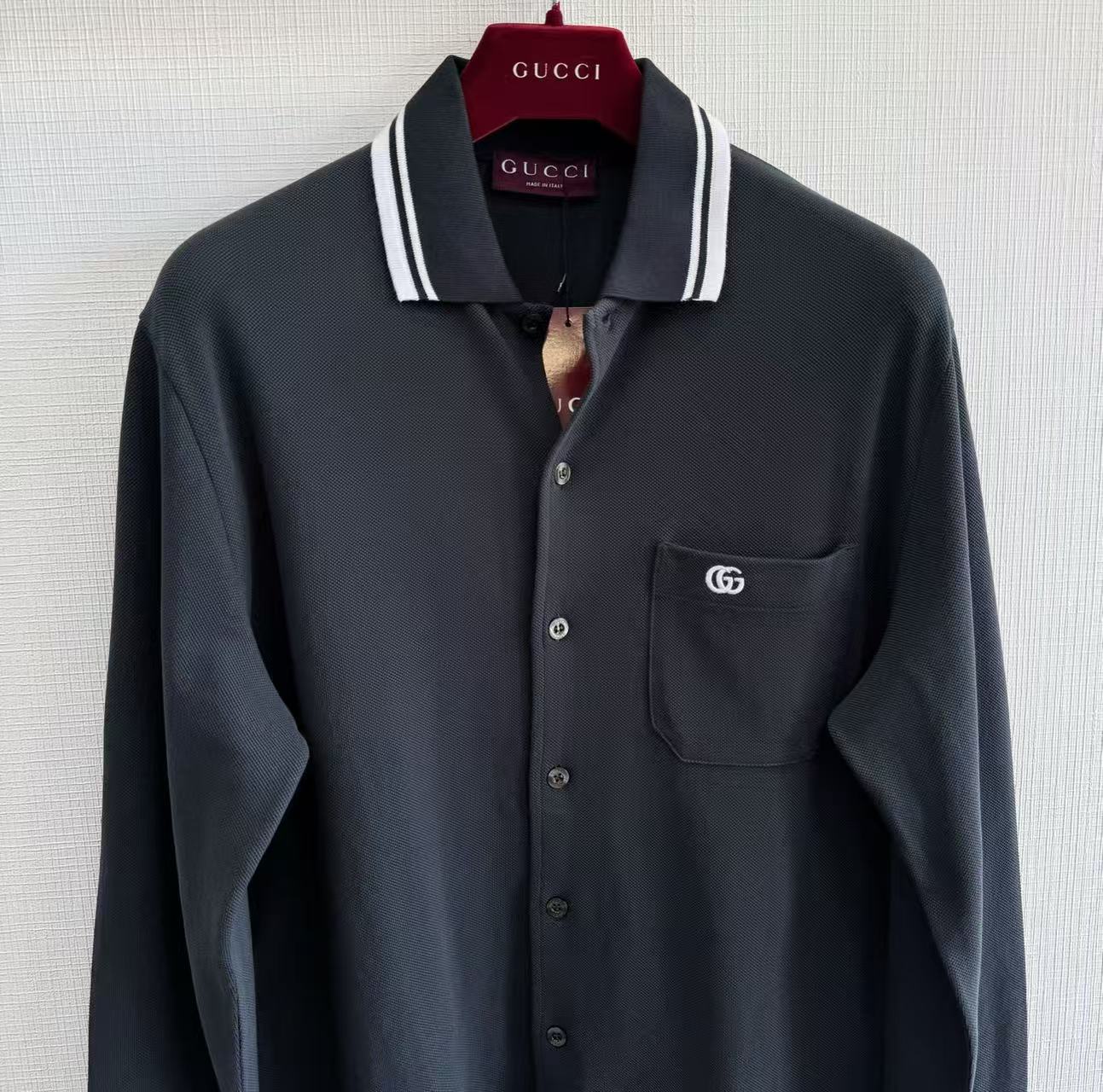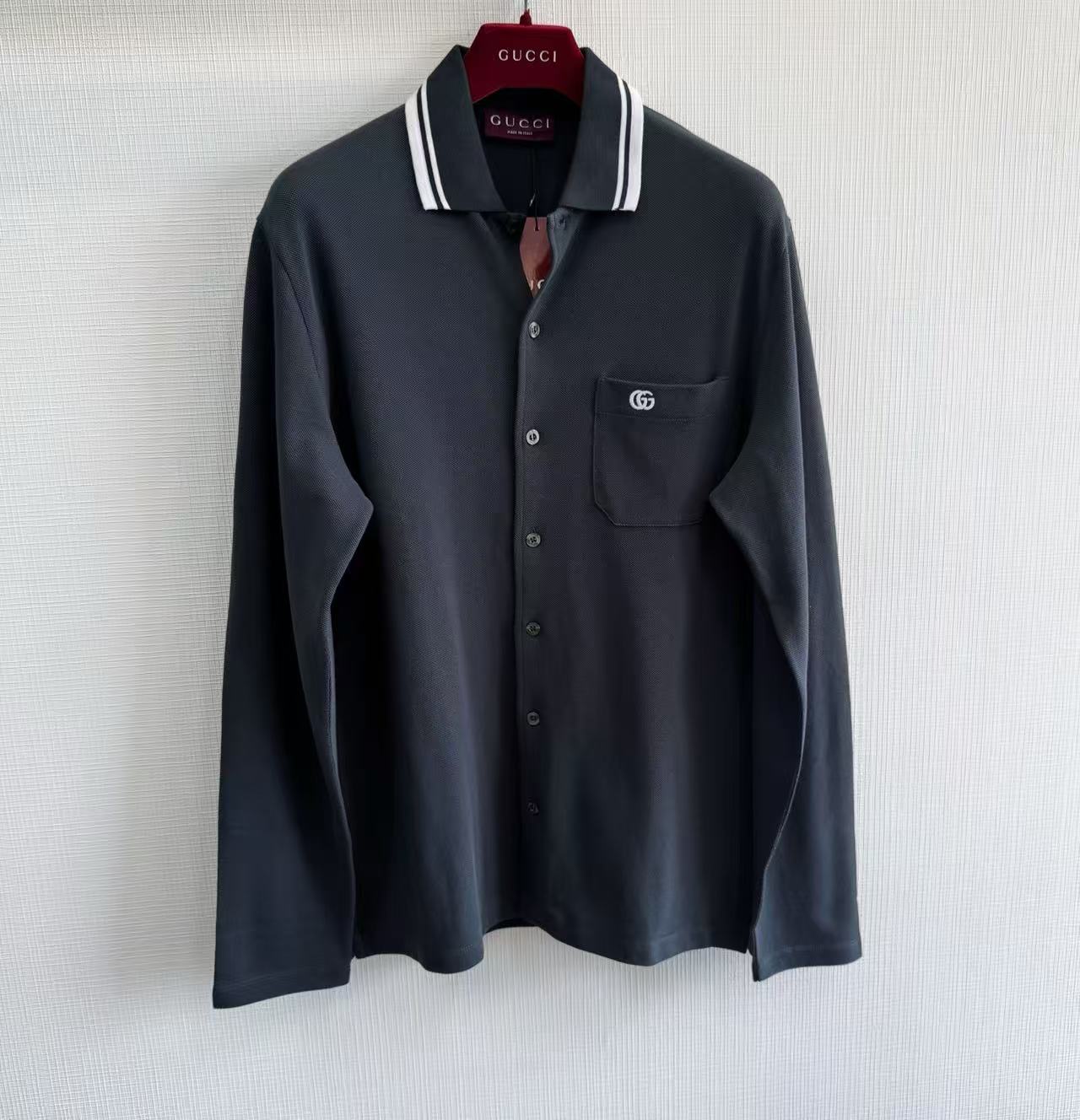 2025早秋新品 G家 口袋刺繡字母長袖polo衫