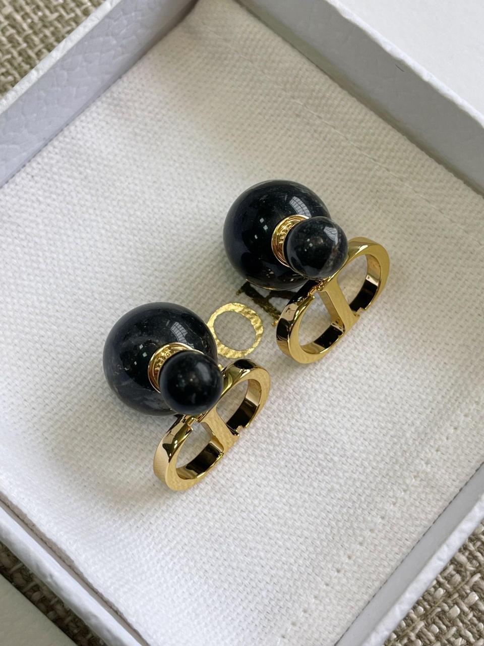 D家黑白珠耳釘