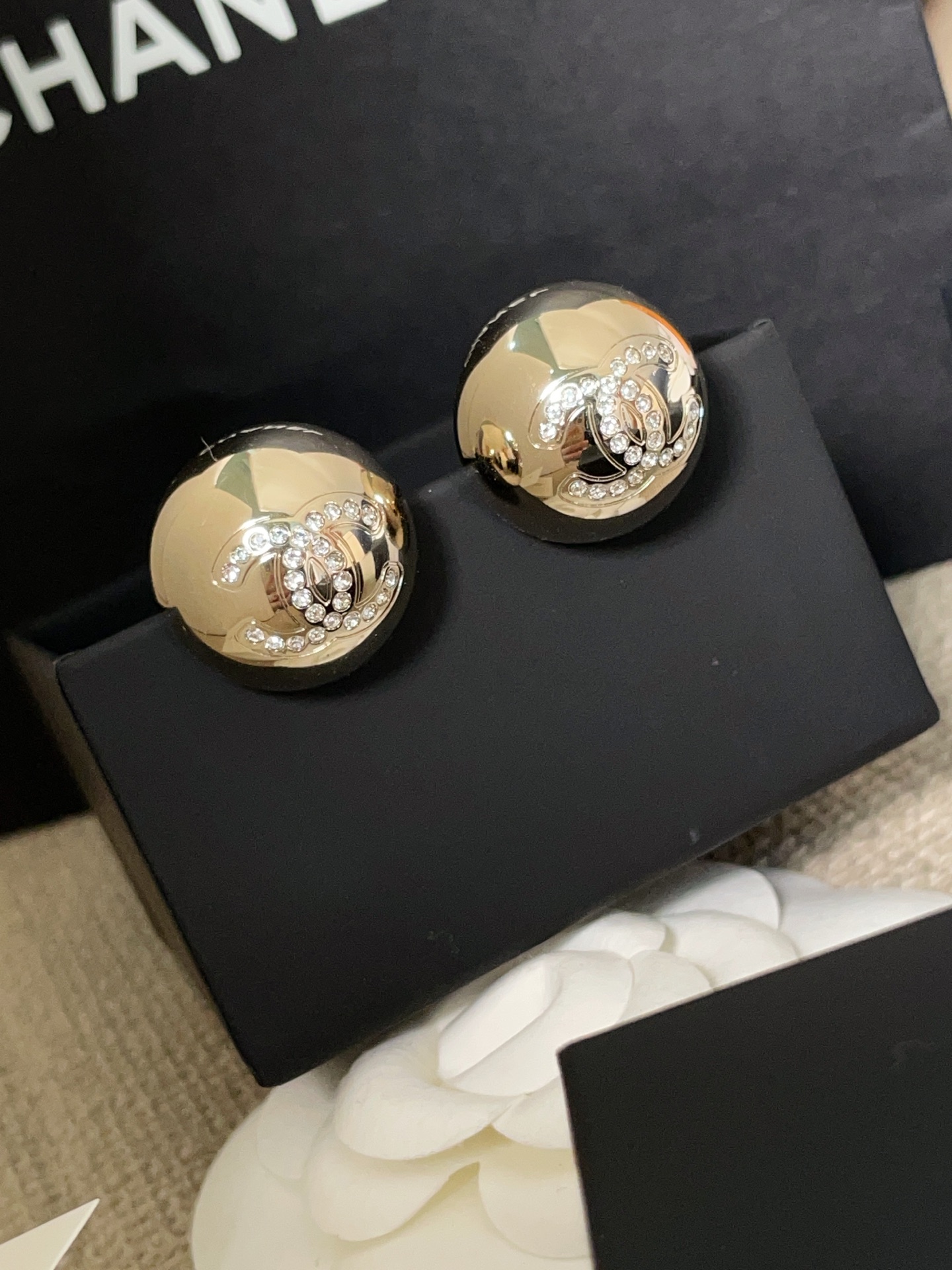 2026早春新品 C家 鑲鑽雙C半球耳釘