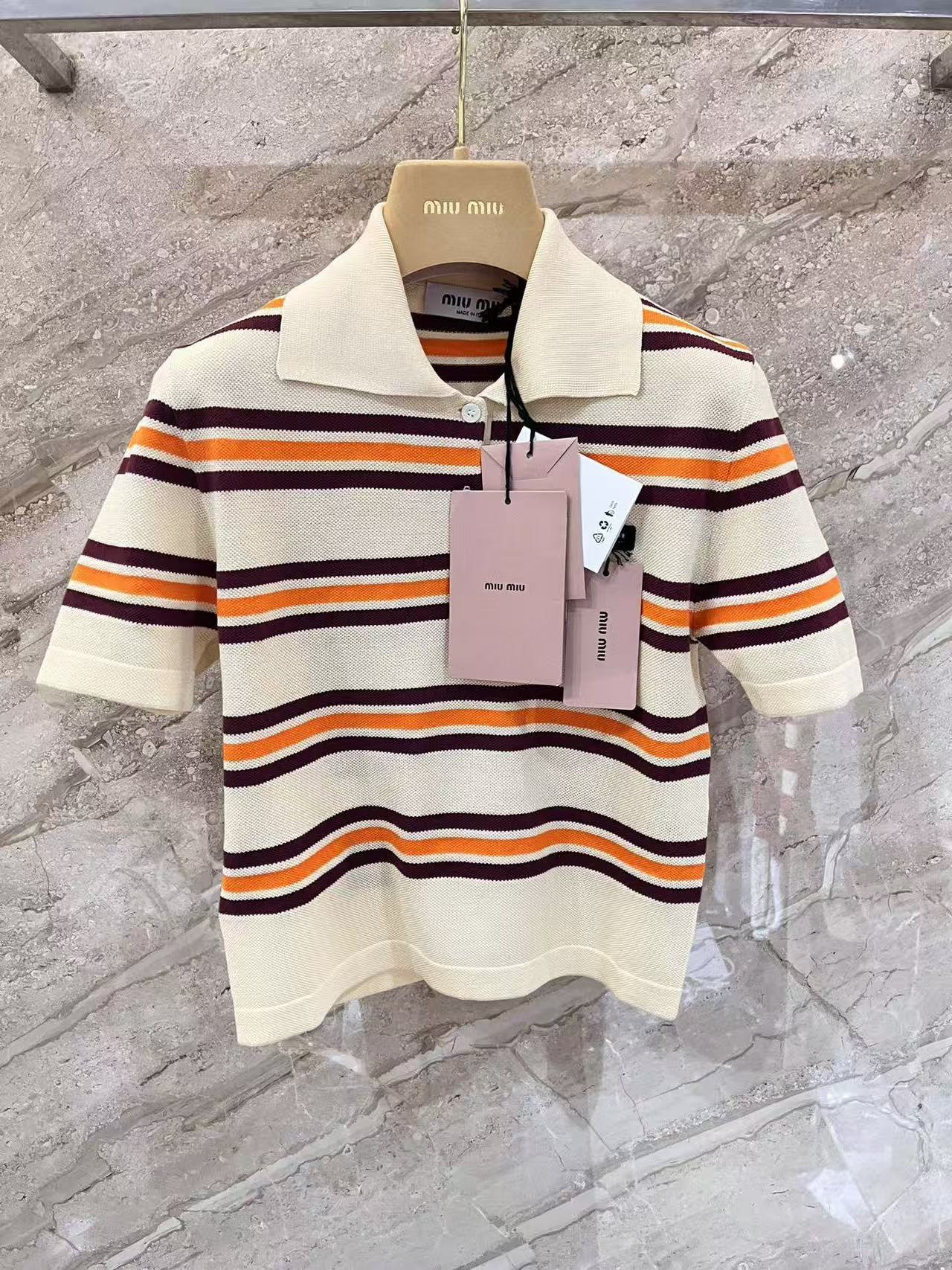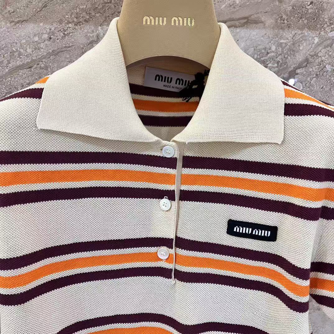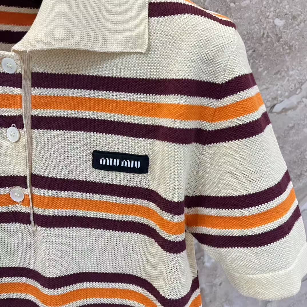 早春重磅特惠福利-Miu家 橙紫條紋針織 短袖