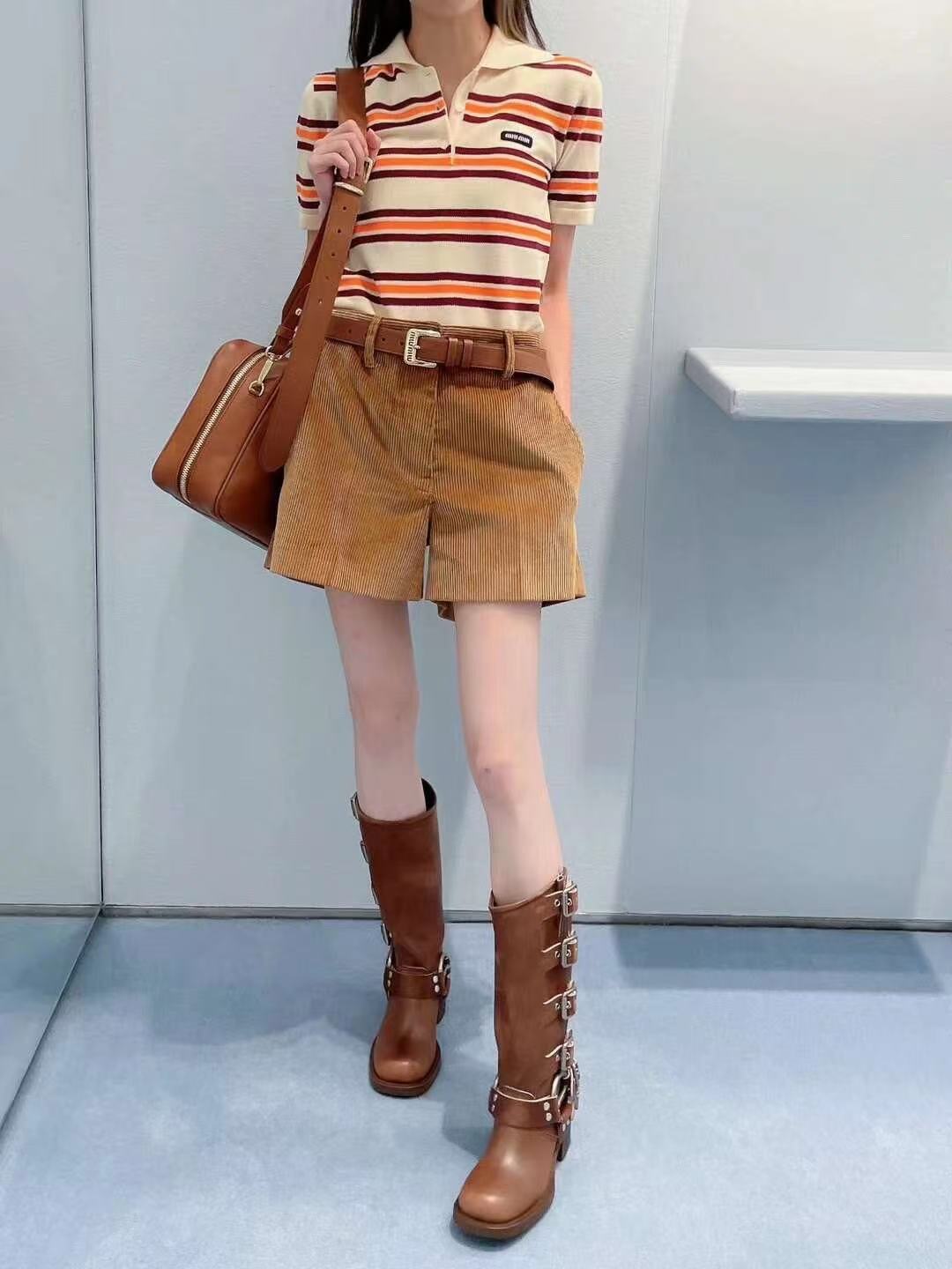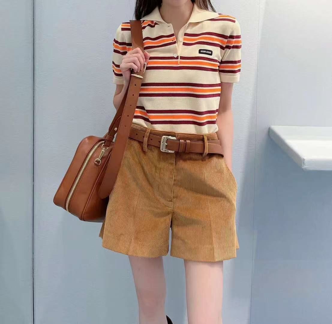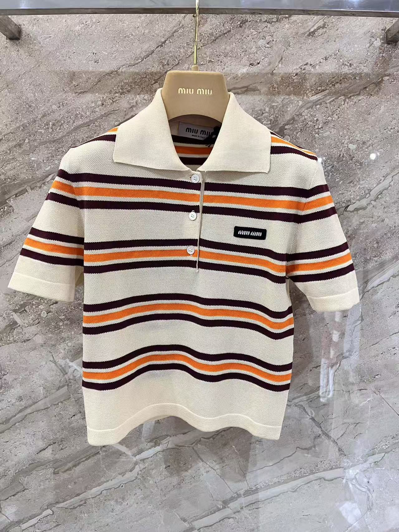 早春重磅特惠福利-Miu家 橙紫條紋針織 短袖