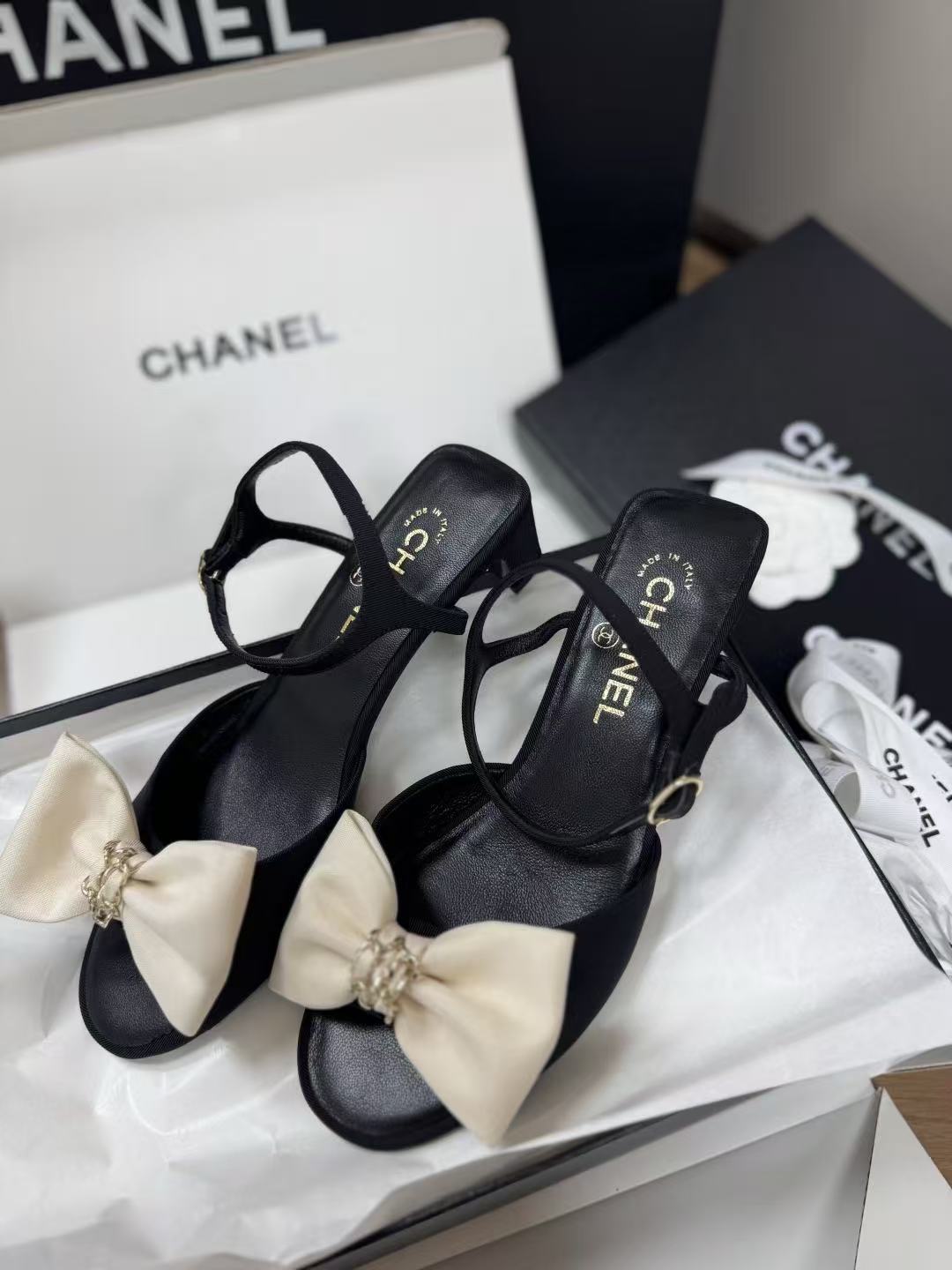 蝴蝶結不僅是裝飾,更是跨越時代的女性化符碼。這次分享的 2025 早春(25K)黑色圓頭低跟涼鞋,完美定義了何謂「精品級的甜美」。