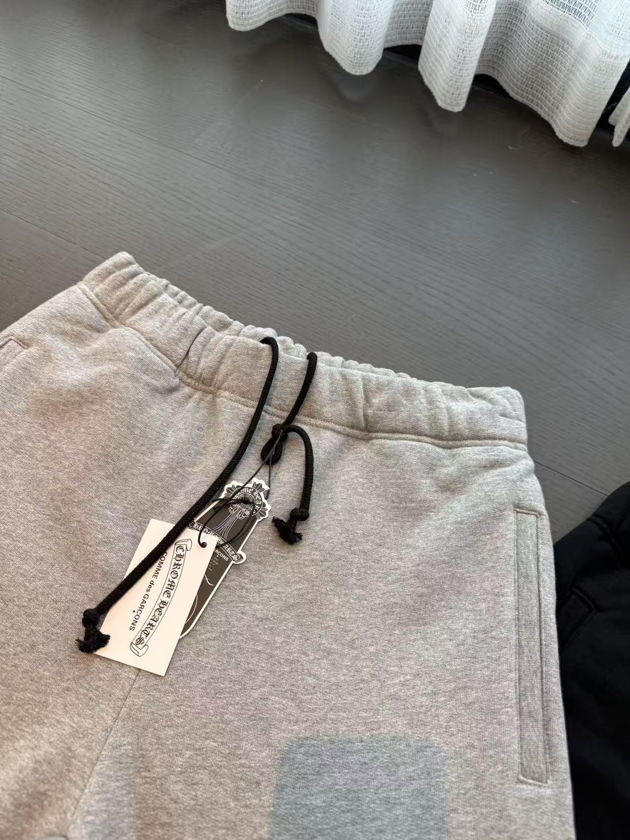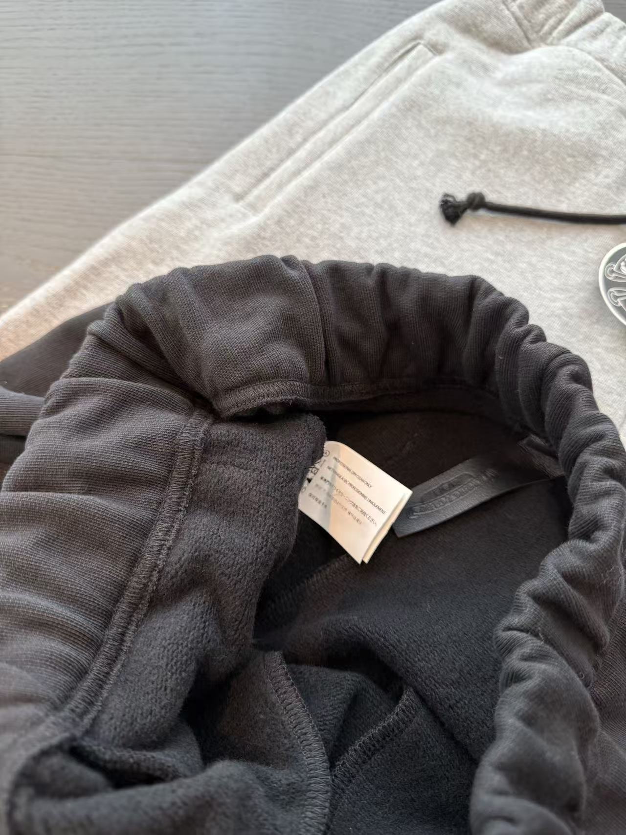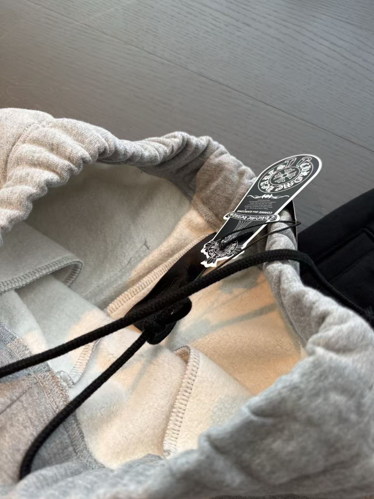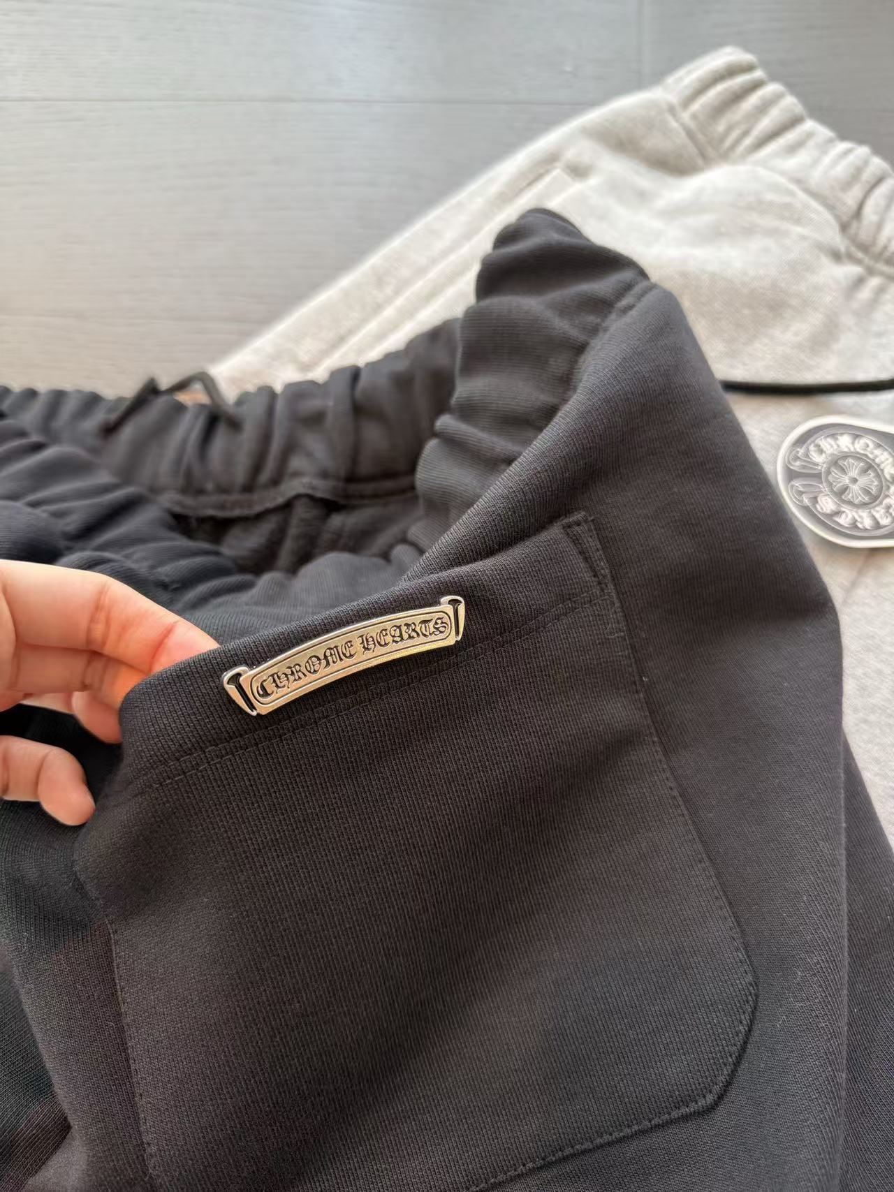 十字架符號始終是不可撼動的靈魂。這次分享的 三叉戟拼皮十字架毛圈抓絨衛褲,將品牌最核心的叛逆基因,透過極致的重磅材料與複雜的異形貼布技術重新詮釋。