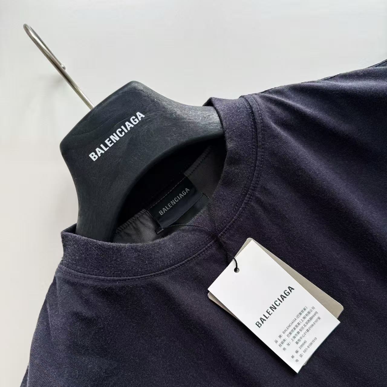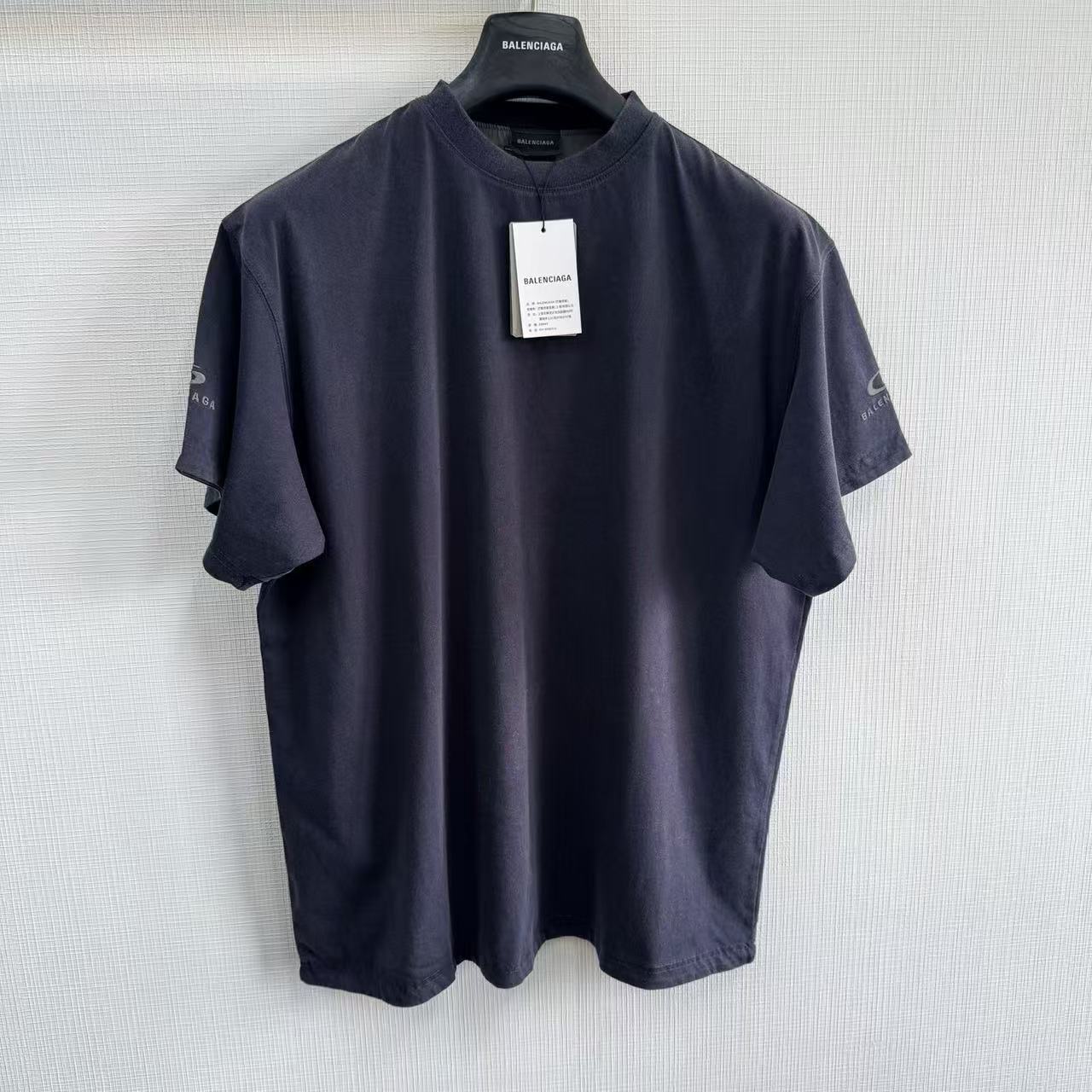 褪色水洗效果:T 恤經過了特殊的褪色灰色水洗效果處理,這是通過後整理工藝模擬自然舊化感的獨特技術。通過控制性的石磨、酶洗等工藝,在深色基底上形成不均勻的褪色痕跡,從而營造出柔和、復古的灰度視覺效果,充滿了故事感。