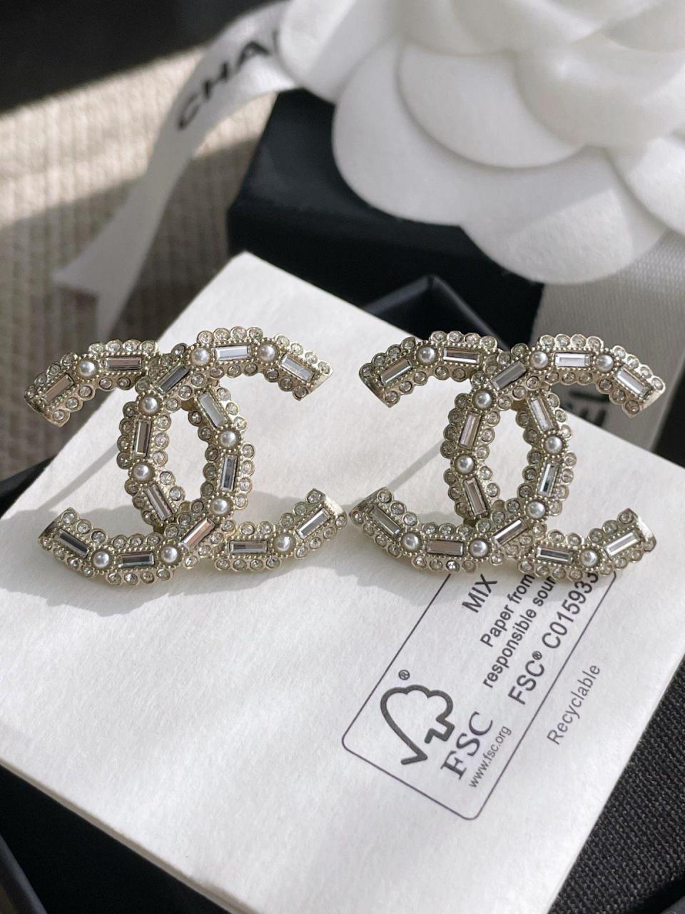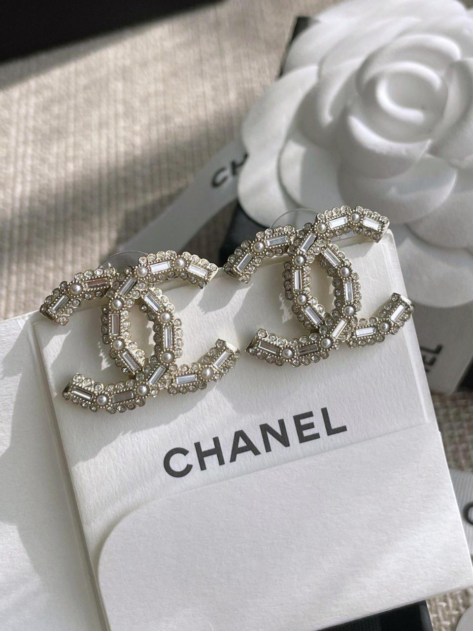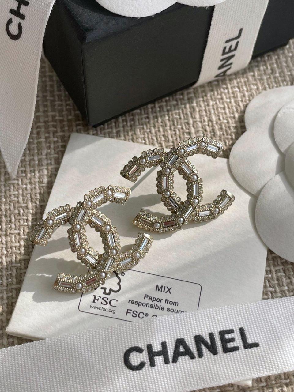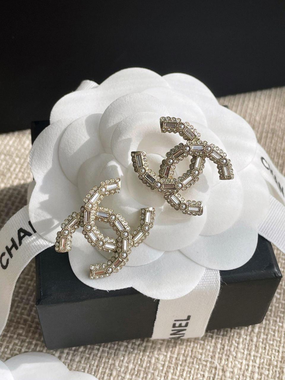 經典的雙C元素加上超有設計感的花邊鑽邊和長方形施華洛鑽,高級感滿滿,非常炸眼的設計,上身時尚感與優雅氣質集一身,越看越喜歡!超級重工奢華,顆顆施華洛絕對的經典!