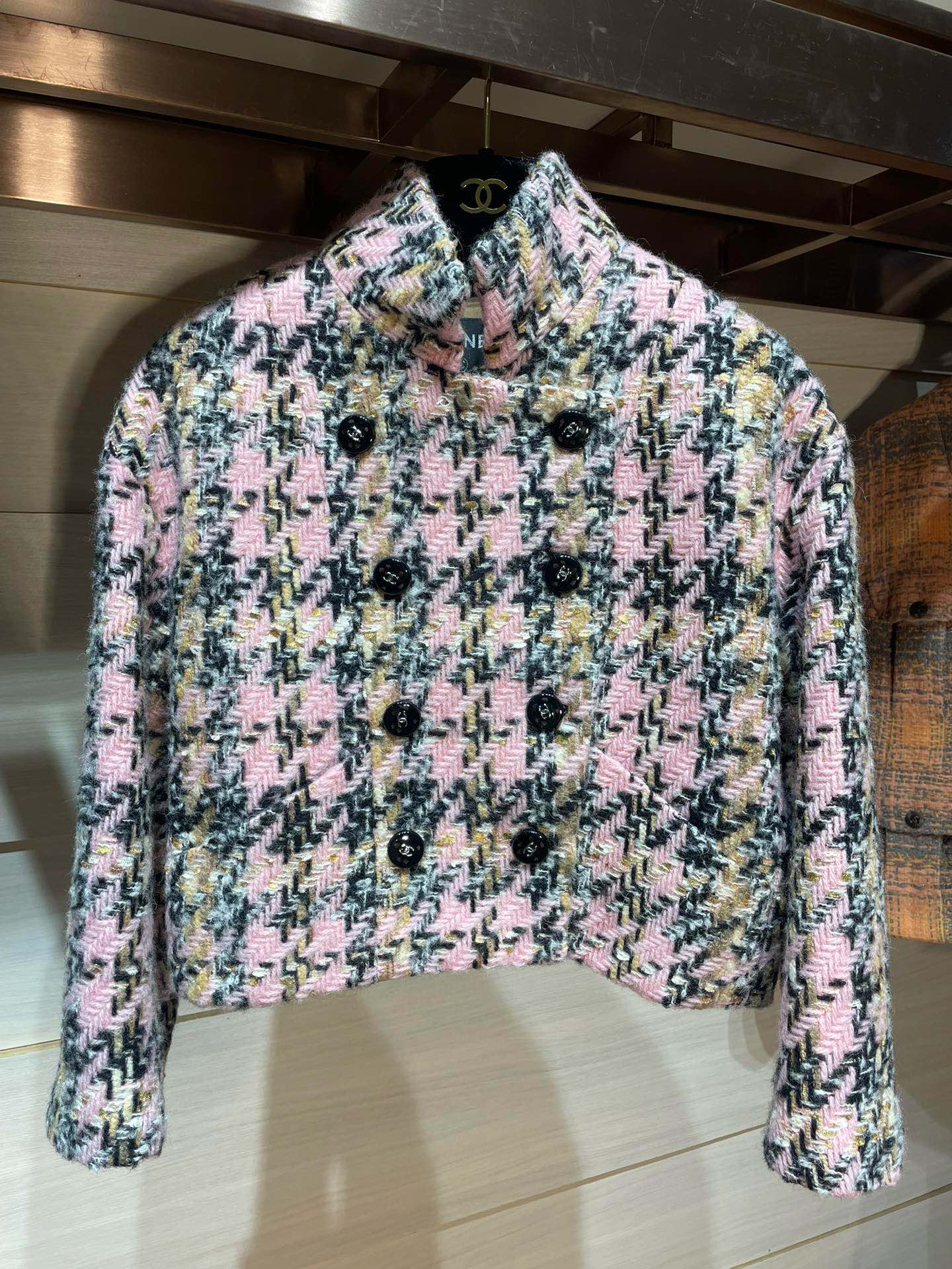 2024秋冬新品 C家拼色千鳥格短款外套