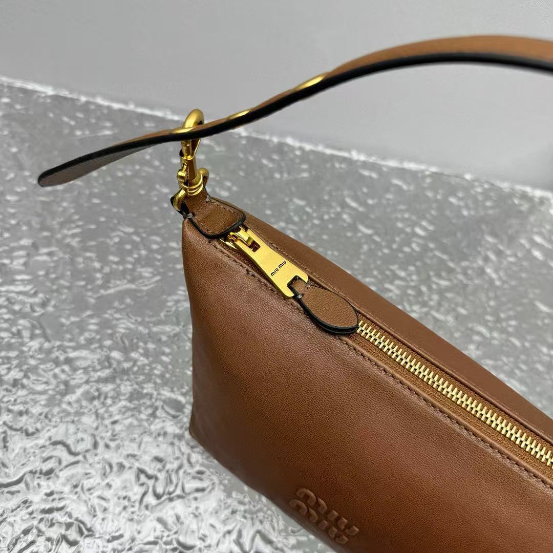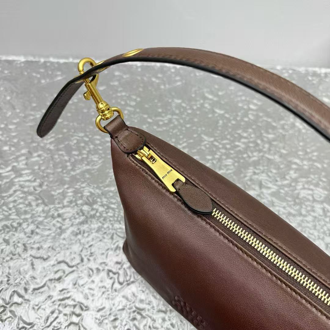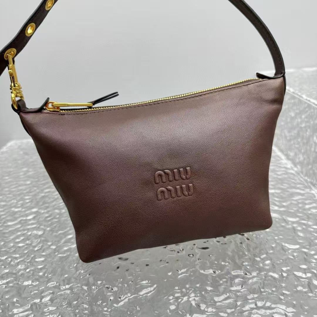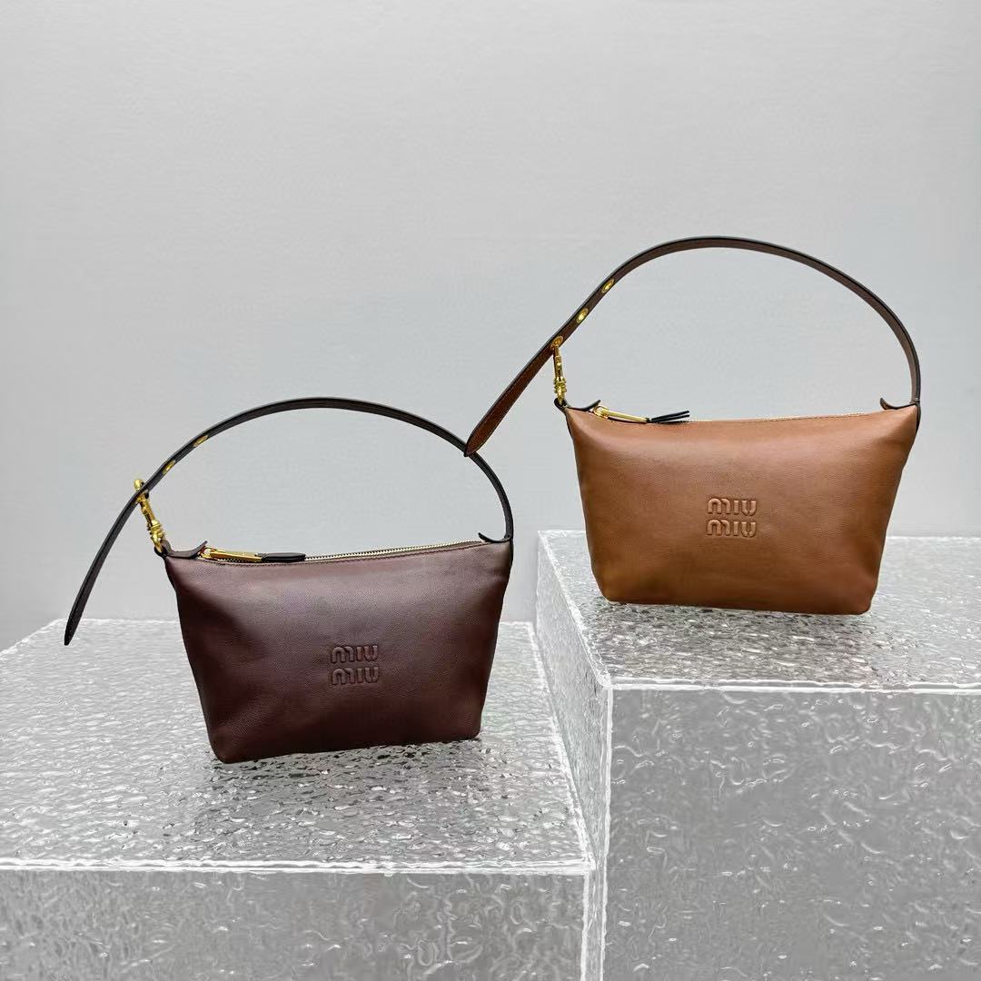 經典棕色,百搭不敗:棕色調低調又溫暖,無論搭配休閒牛仔褲還是優雅連衣裙,都能完美融入,展現 MIU 的年輕與高級氣質。