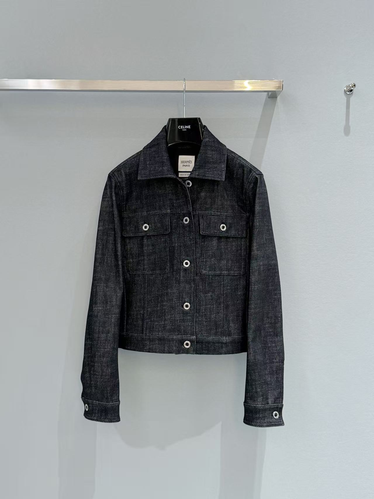 2026早春 H家 深靛藍短版翻領丹寧外套