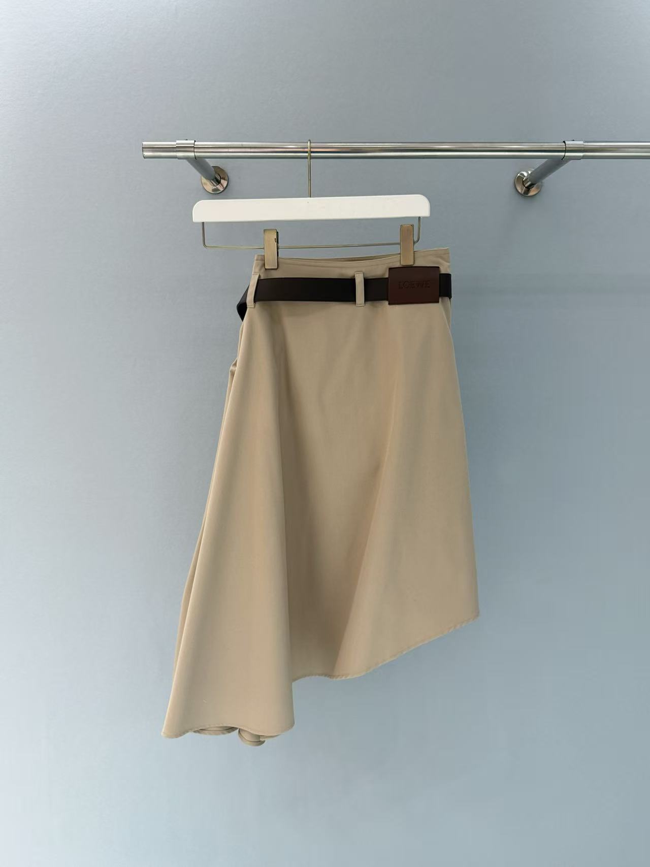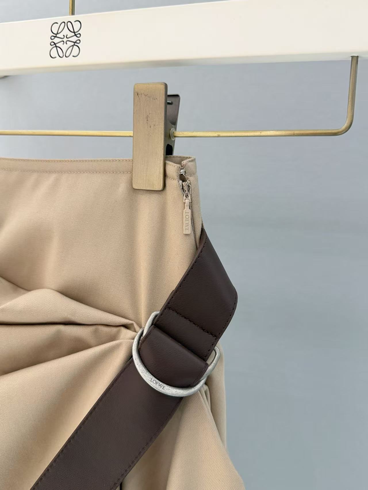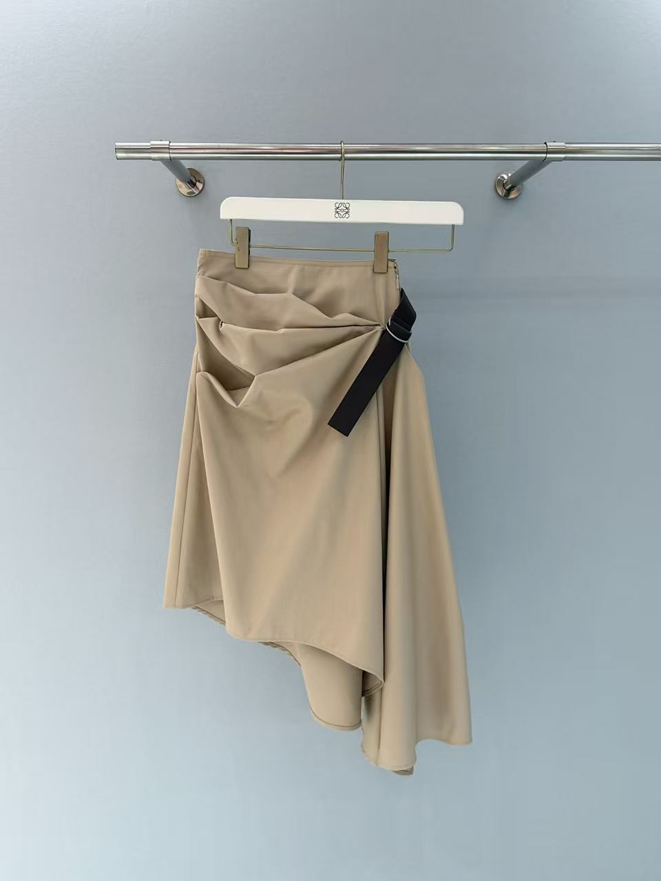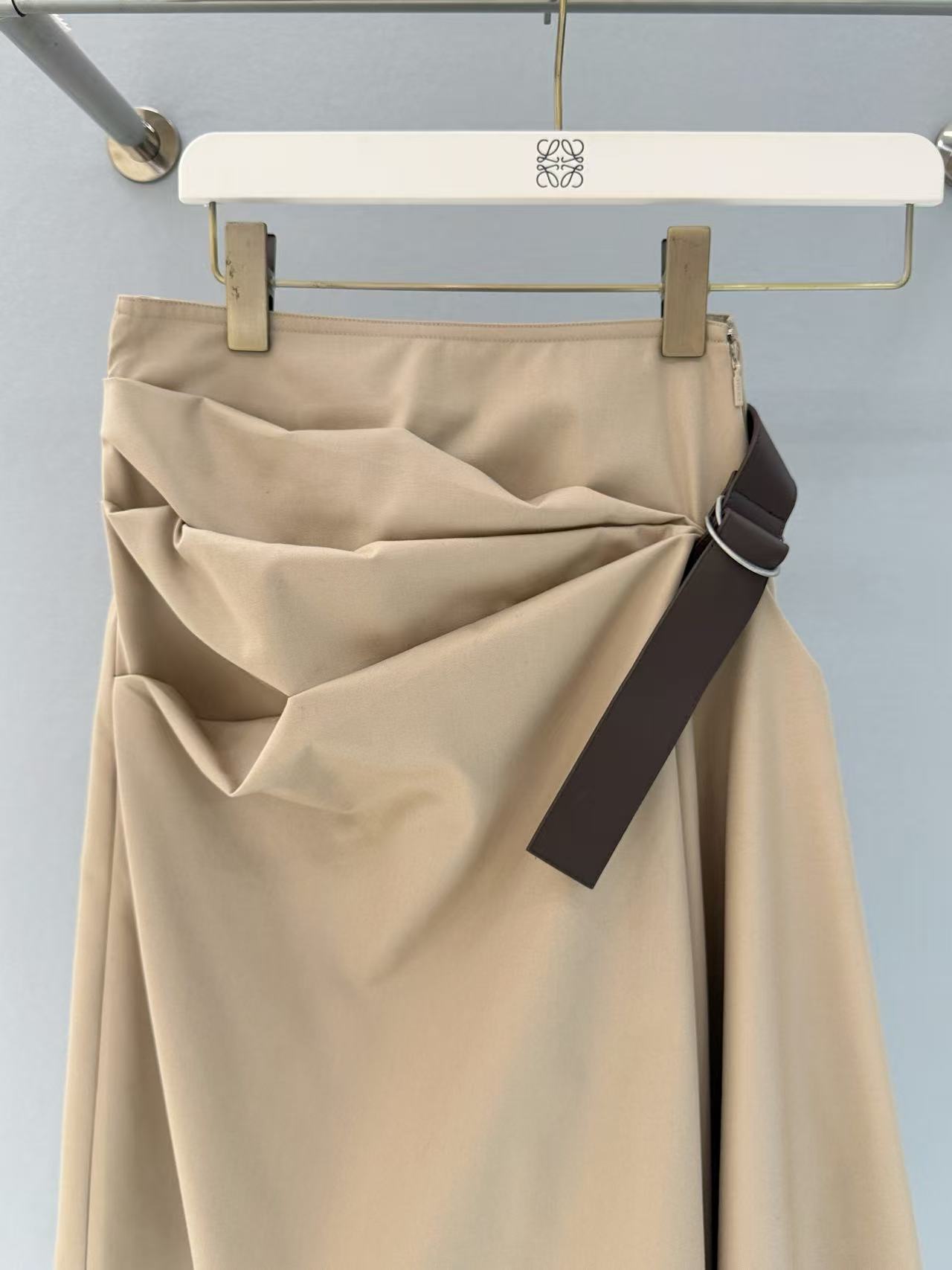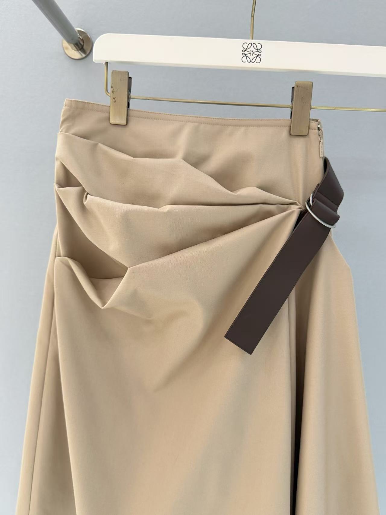 2025早春 LEW家 卡其色不對稱褶皺半裙