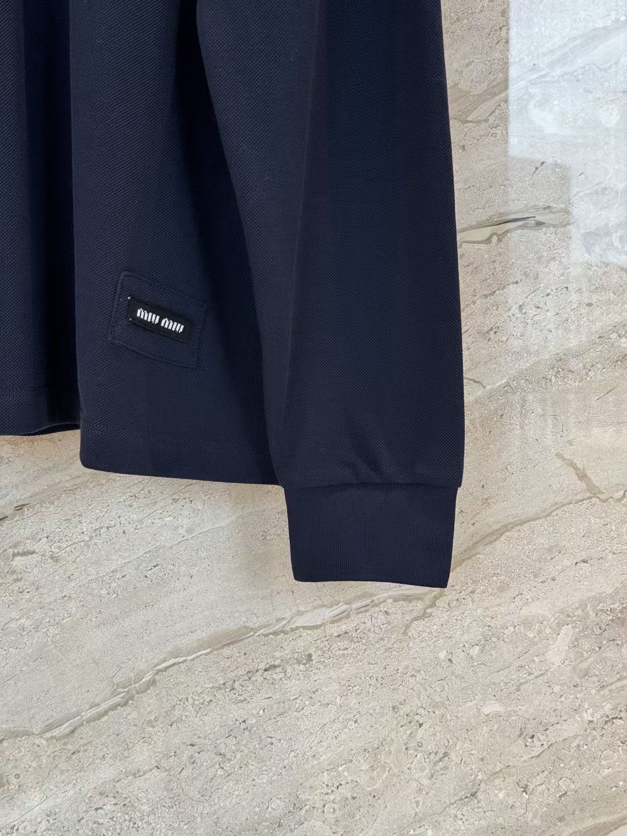 這款單品在視覺細節上展現了極致的平衡感。深邃的藏青底色搭配領口與袖口的對比白色條紋,瞬間注入了強烈的賽車與學院氛圍。
