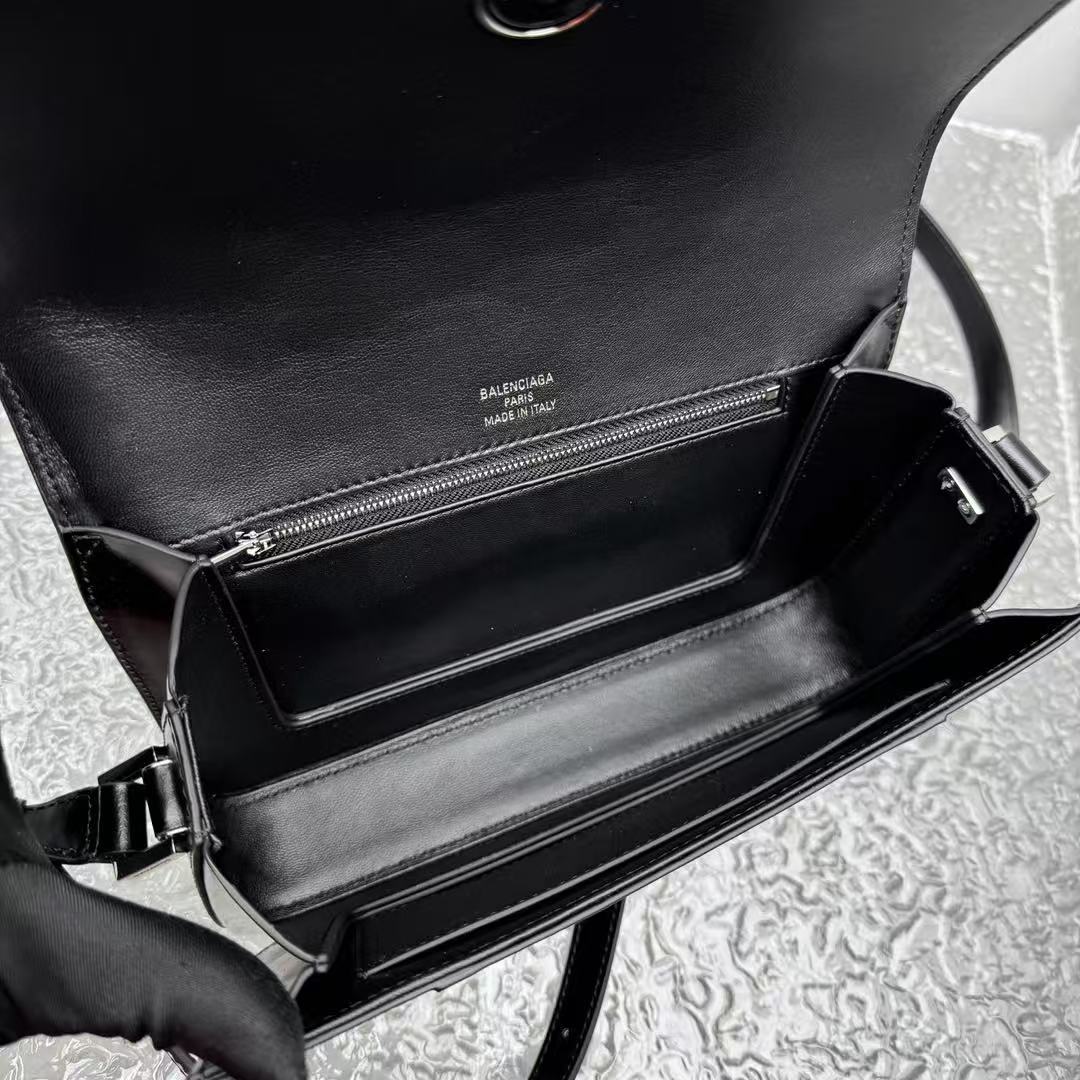這款 Hourglass 斜挎包的設計細節充滿了 Balenciaga 的標誌性風格: