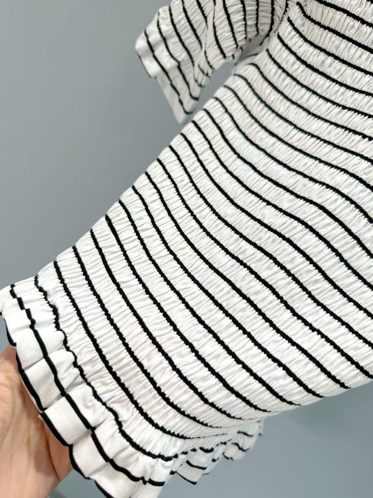 經典黑白條紋設計,帶來自在的松弛感,細膩的褶皺肌理藏著低調小心機,增添層次感。