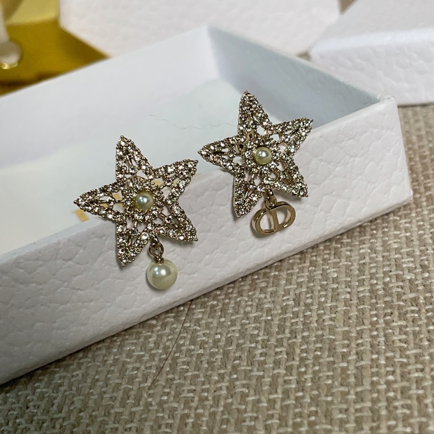 第一眼會被它的配色吸引——柔和的淺金色調,搭配經典 CD 標誌,再加上鏤空滿鑽的五角星設計,視覺層次非常豐富。