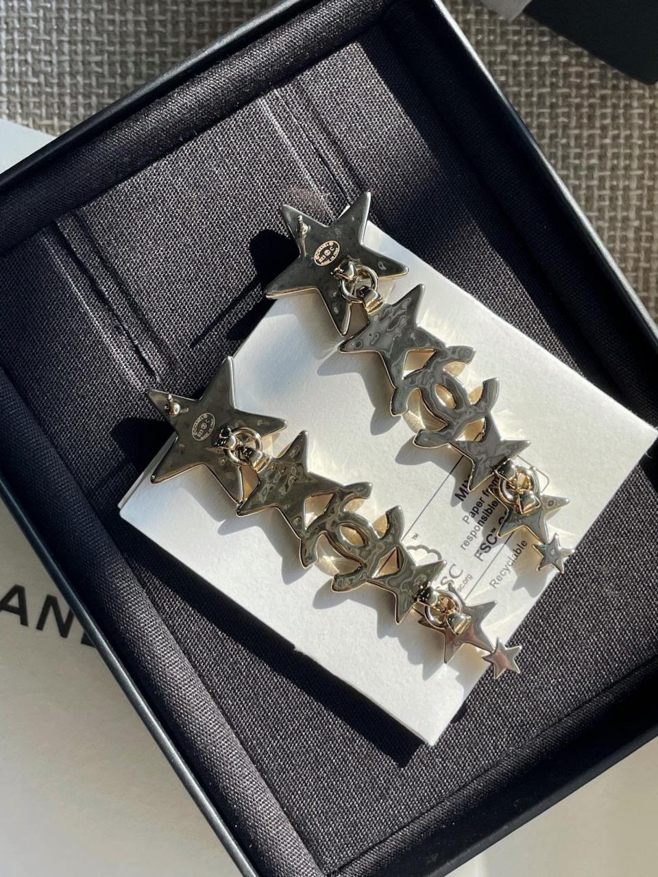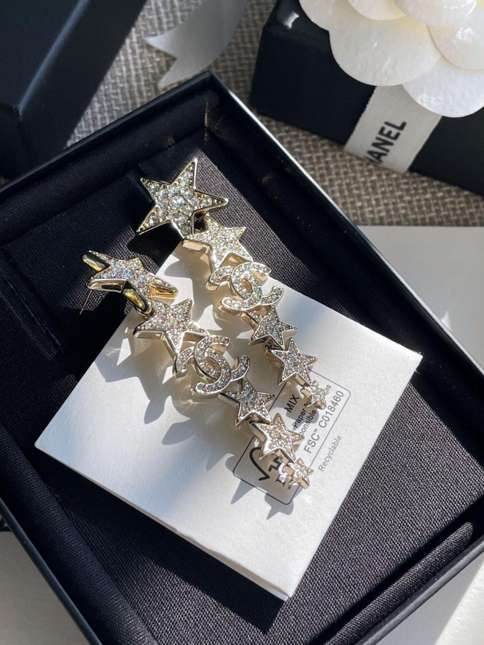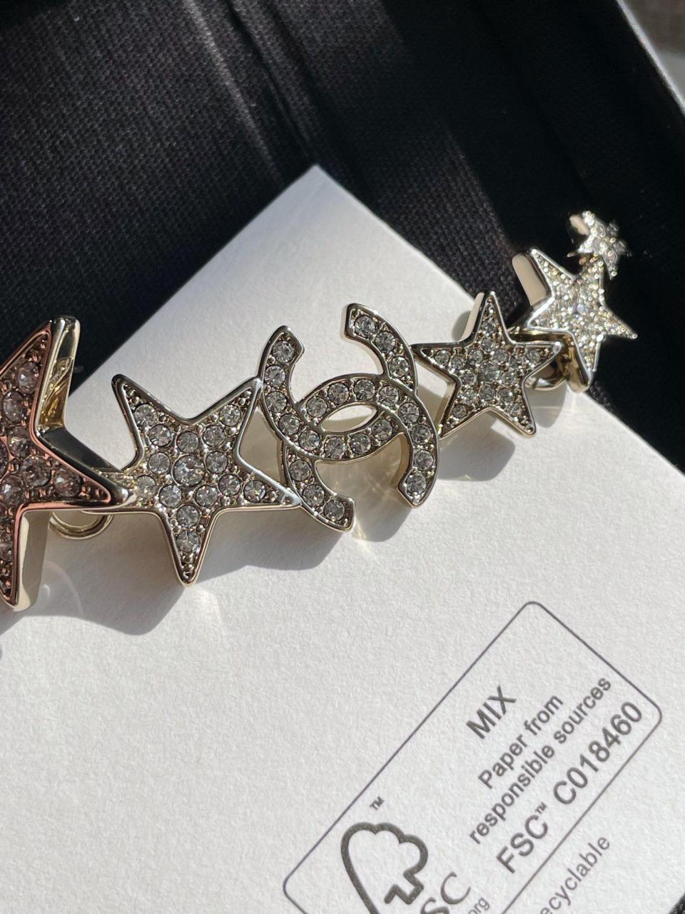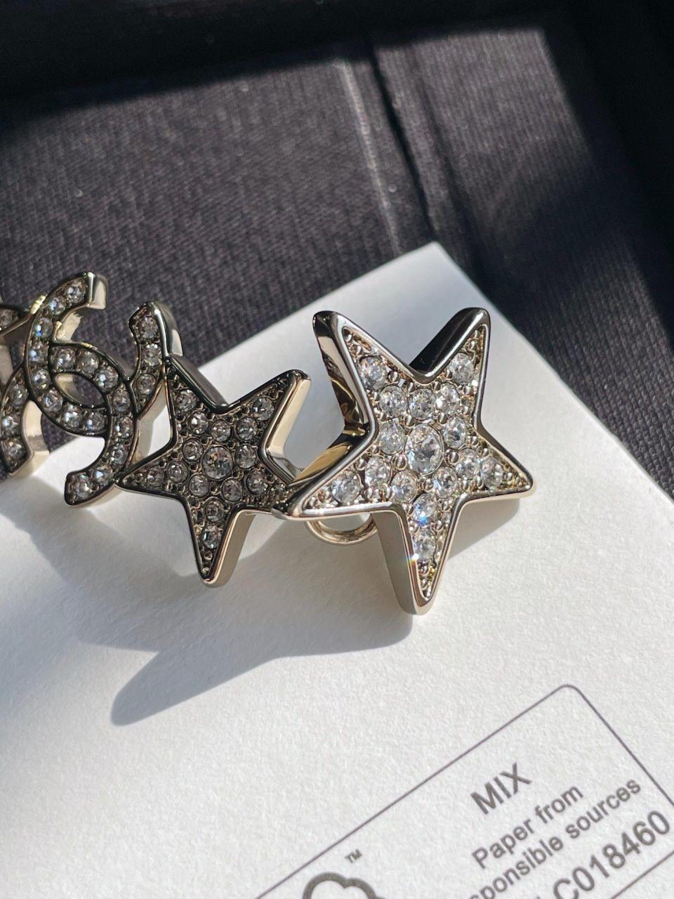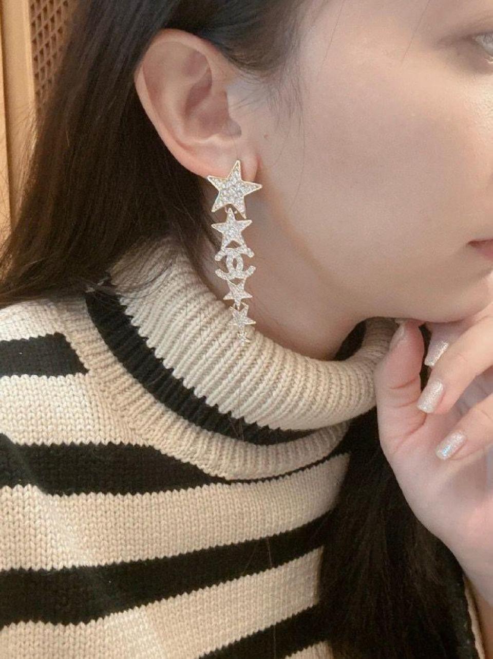 經典的雙C logo增添了活潑的星星元素,非常重工,一對耳環鑲嵌不同規格的水晶,錯落有致,Blingbling更加靈動上耳精緻絕對是日常搭配的首選!