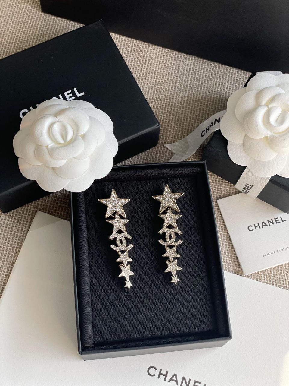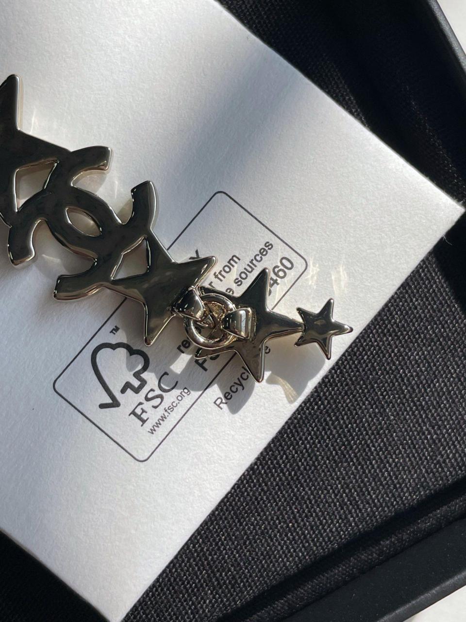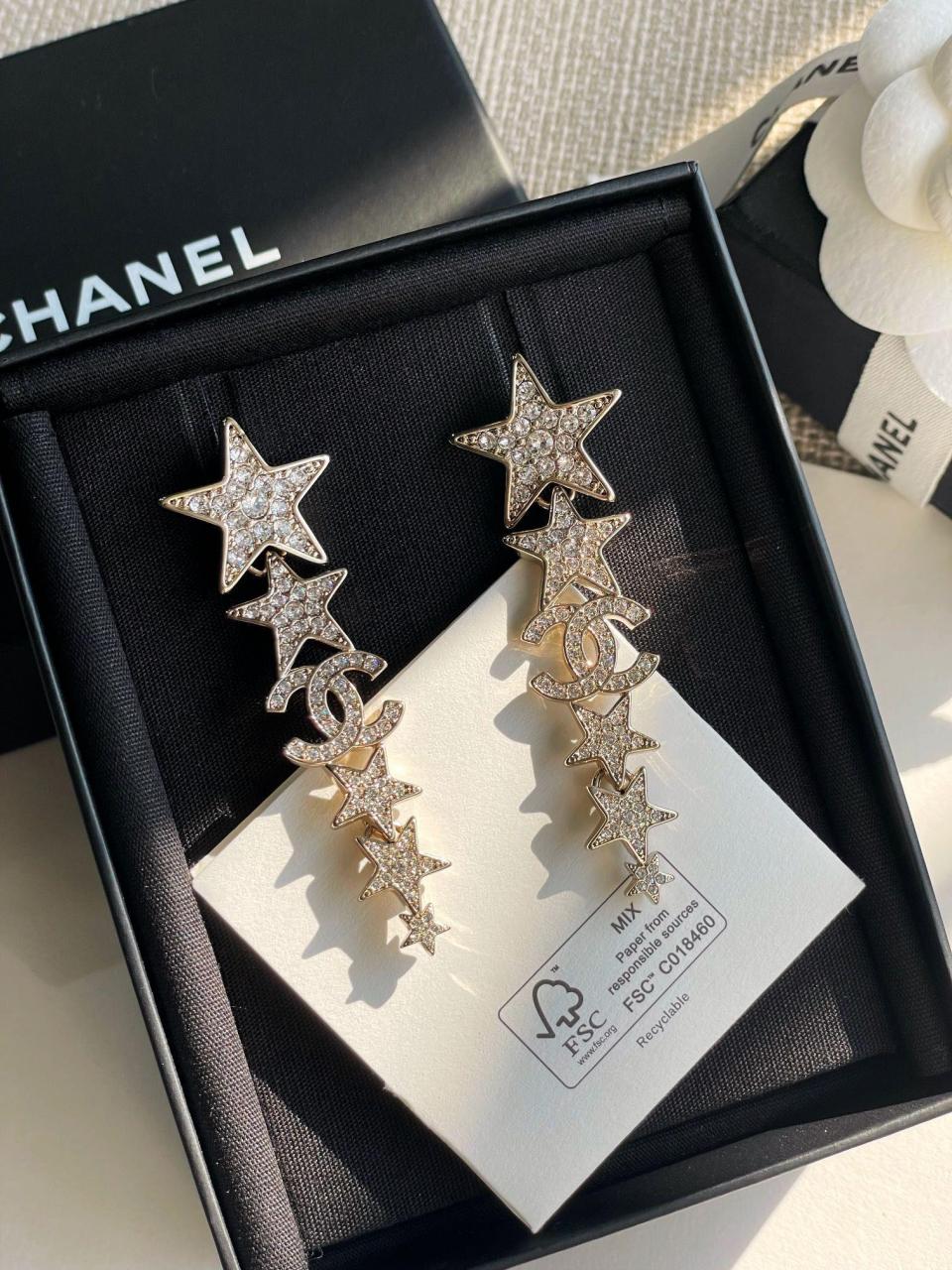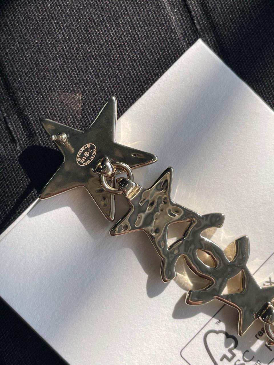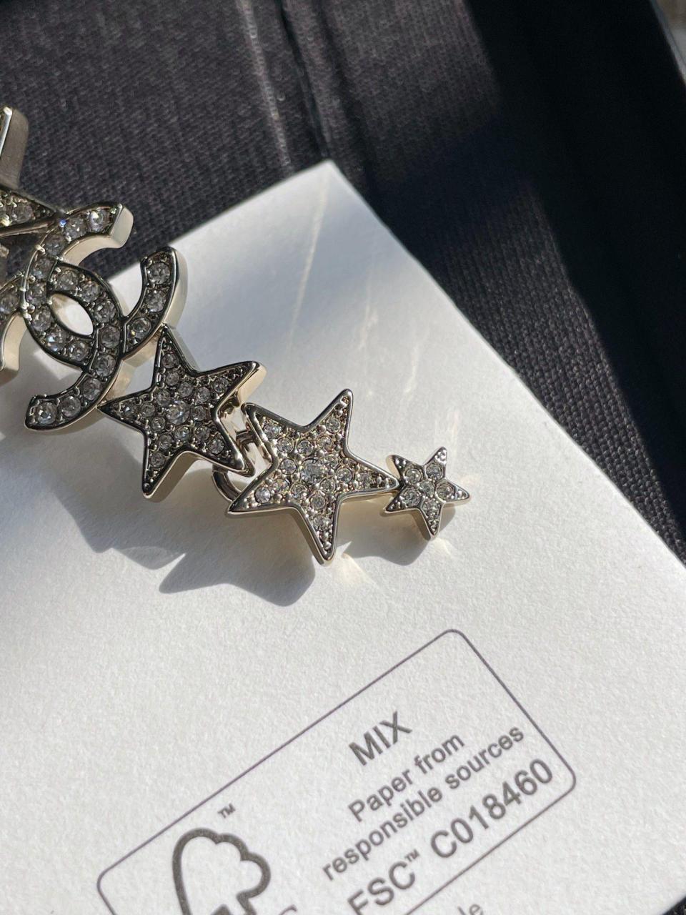 經典的雙C logo增添了活潑的星星元素,非常重工,一對耳環鑲嵌不同規格的水晶,錯落有致,Blingbling更加靈動上耳精緻絕對是日常搭配的首選!