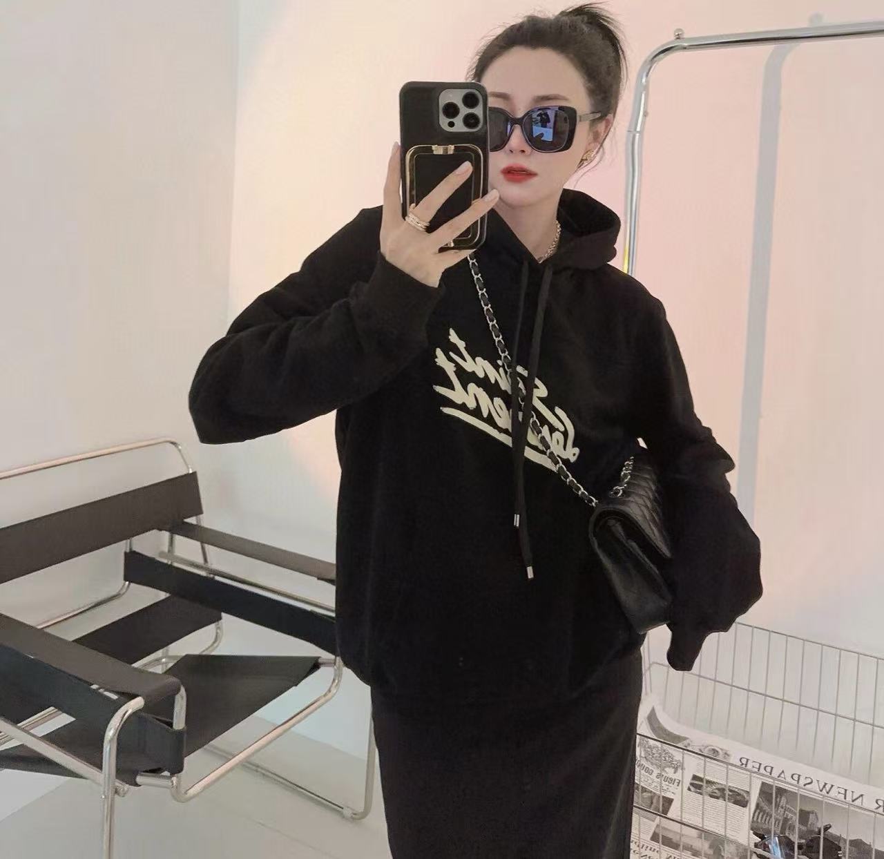 2025秋冬新品 Y家 草寫刺繡字母連帽衛衣