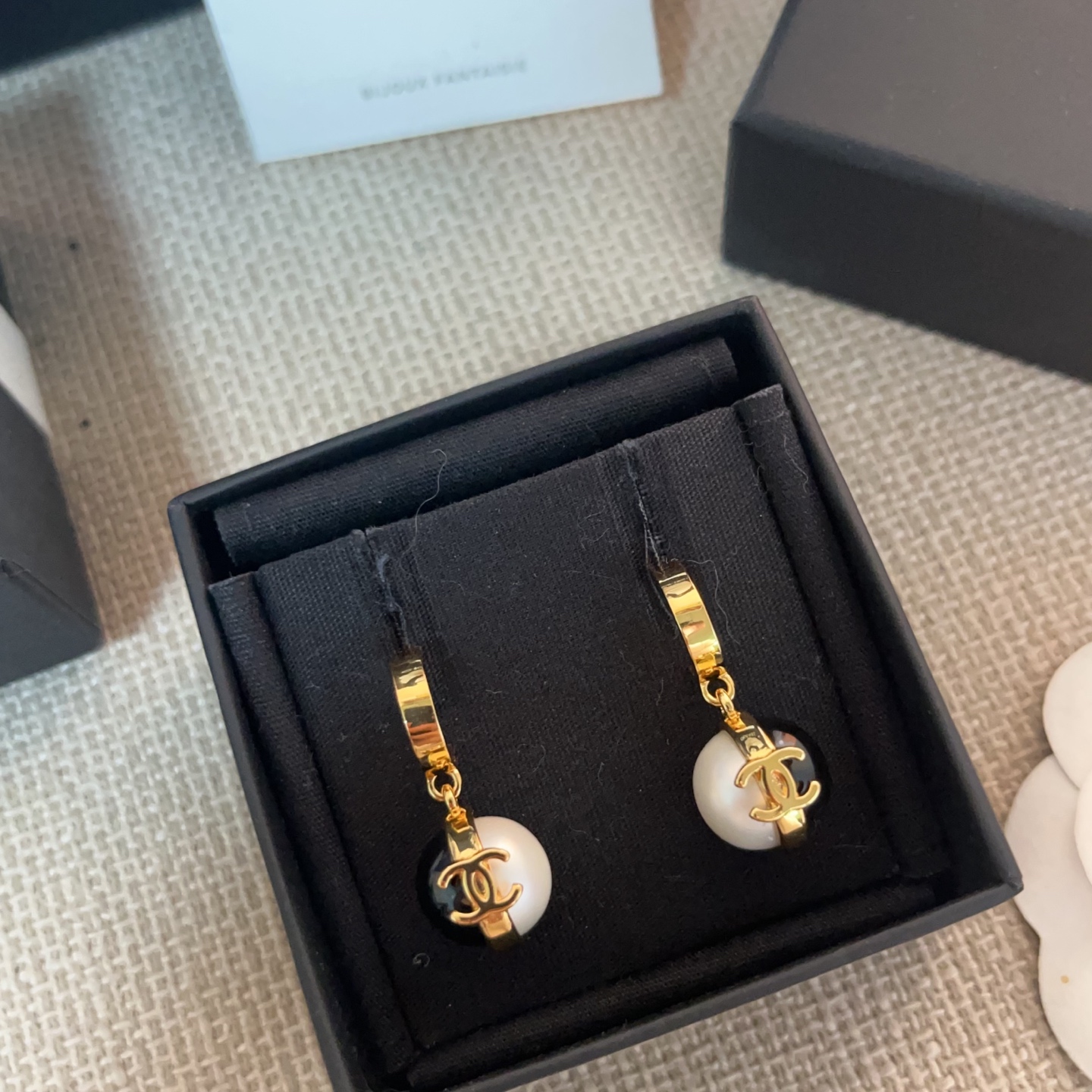 採用黃銅材質打造,搭配特別訂製的人造珍珠,整體光澤柔和細緻,不過於張揚卻充滿高級感。材質穩定耐用,長時間佩戴也依然舒適無負擔。