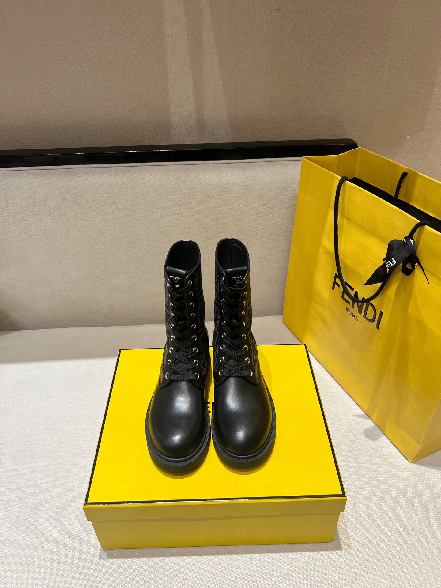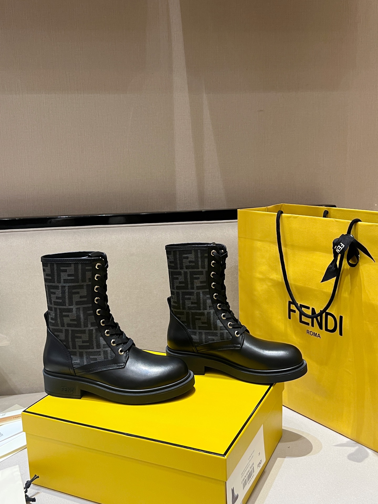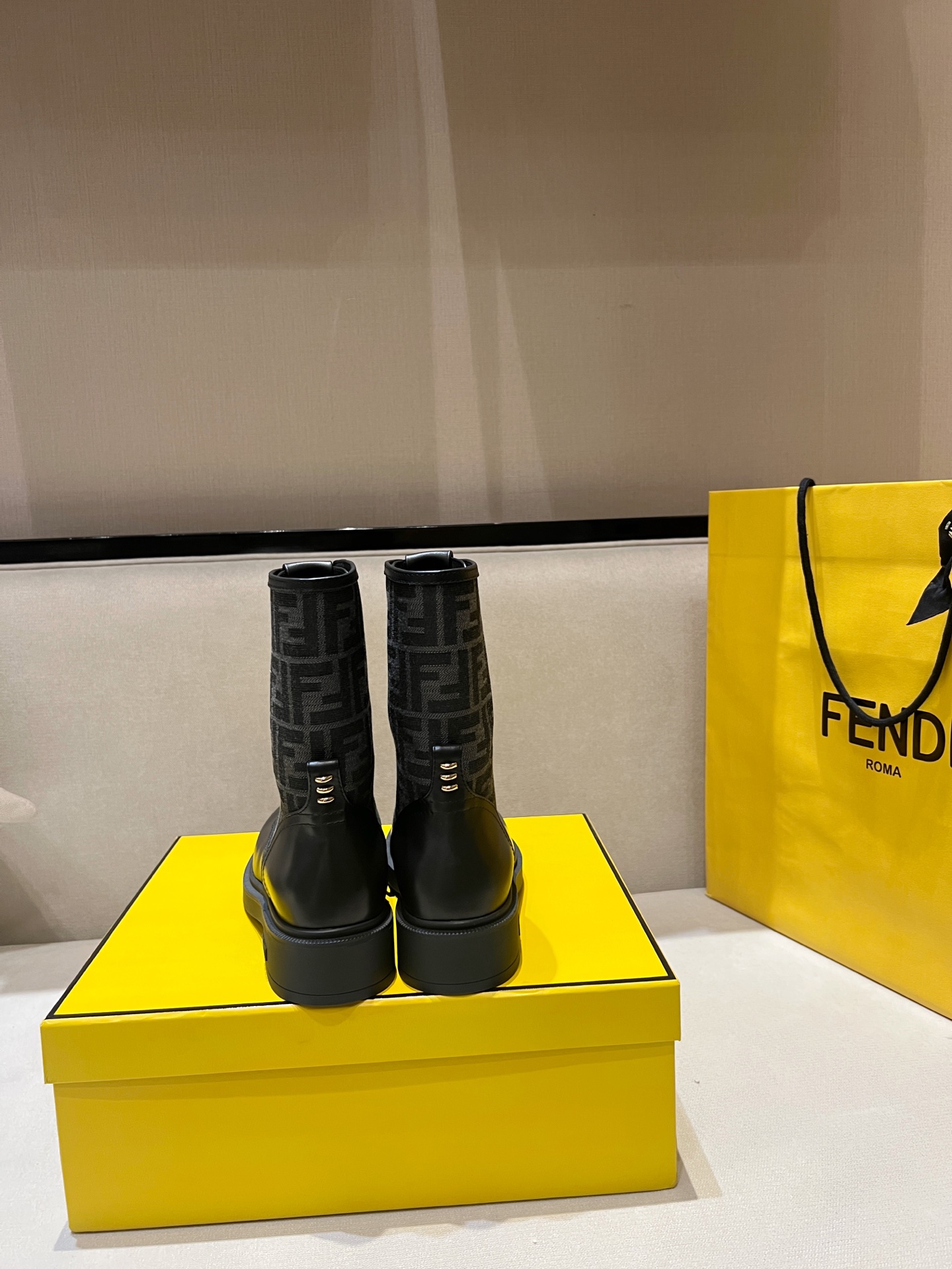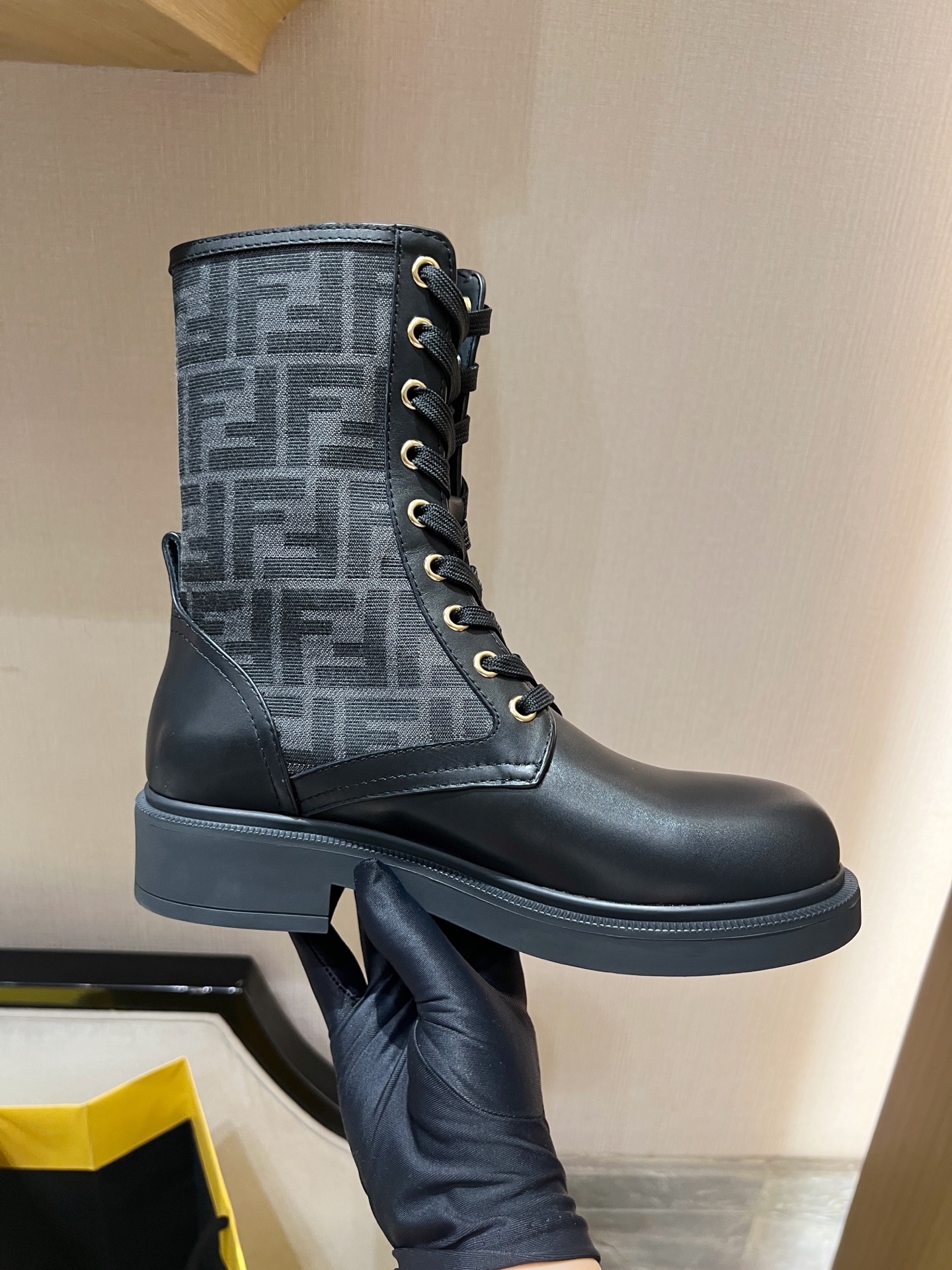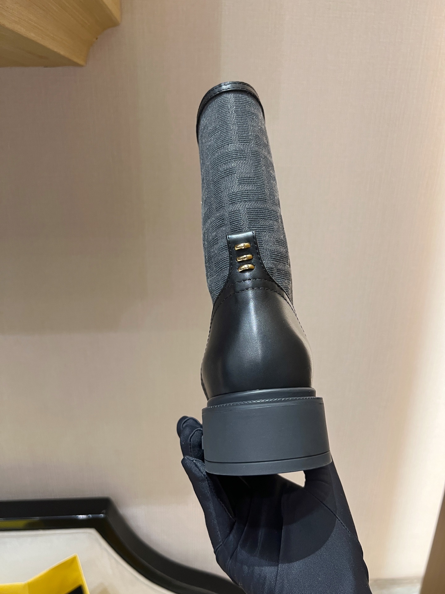 圓頭設計帶出俐落率性的氛圍,靴身內側點綴經典 F 布老花元素,細節一眼就能看出品牌的獨特 DNA。