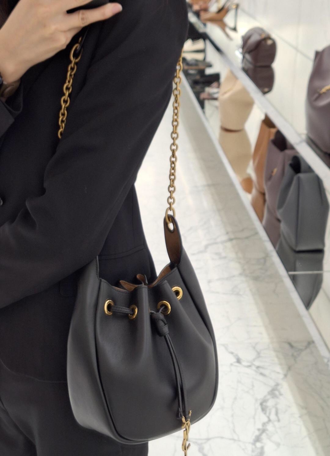 2025秋冬新品 Y家 抽繩水桶鏈條包