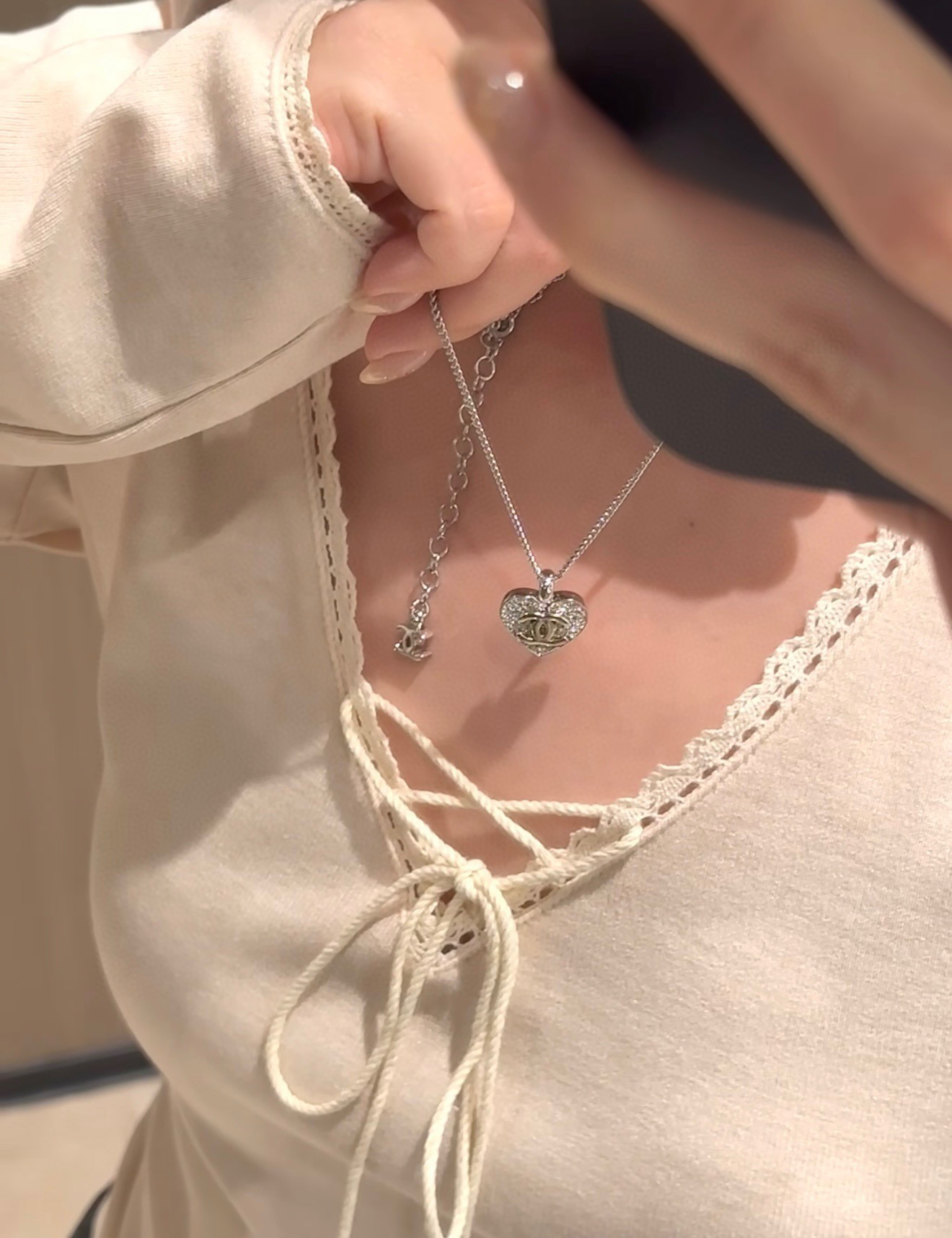 無論單戴或疊搭,都能輕鬆成為鎖骨間最吸睛的亮點。那種若隱若現的閃耀感,真的很有財閥千金般的高級氣場。