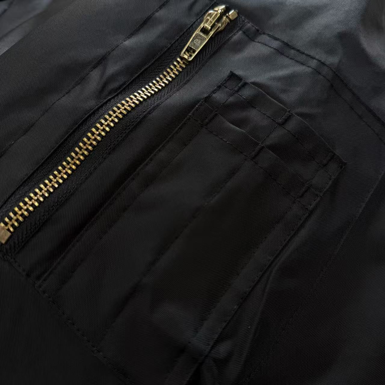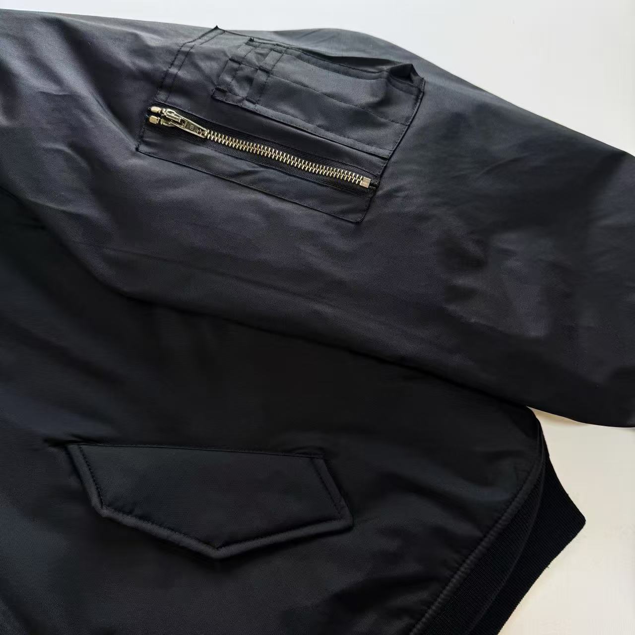 袖臂多口袋機能設計: 延續經典 MA-1 飛行夾克的靈魂,並在口袋拉鏈等細節處進行全面升級。