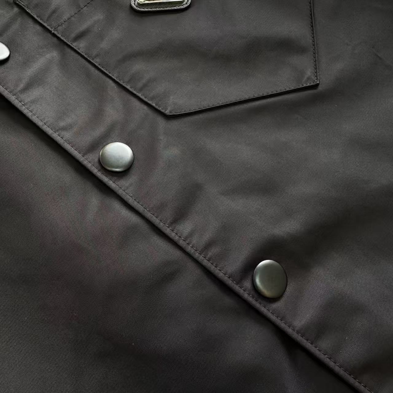 整件衣服的做工細節真的沒話說 所有的走線都是專機處理 邊縫還做了埋夾處理 讓線條看起來非常俐落 每個細節都經得起放大檢視。特別要說一下它側邊的雙口袋設計 拉鍊選用的是5號白尼龍拉鍊 拉頭上有品牌LOGO 拉牙更是特別訂製的歐款拉尺版本 順滑又耐用。最吸睛的還有胸前的皮標 是精緻的珐琅電鍍工藝 亮面同樣有標誌性的LOGO 搭配的四合扣也是1:1定制尺寸 穿脫方便又牢固。