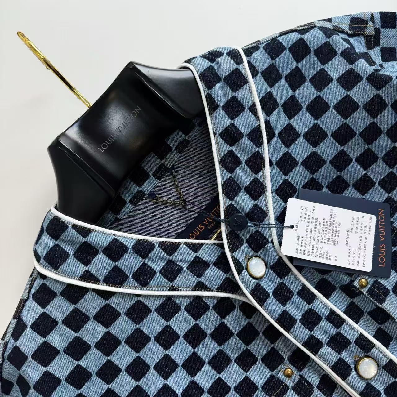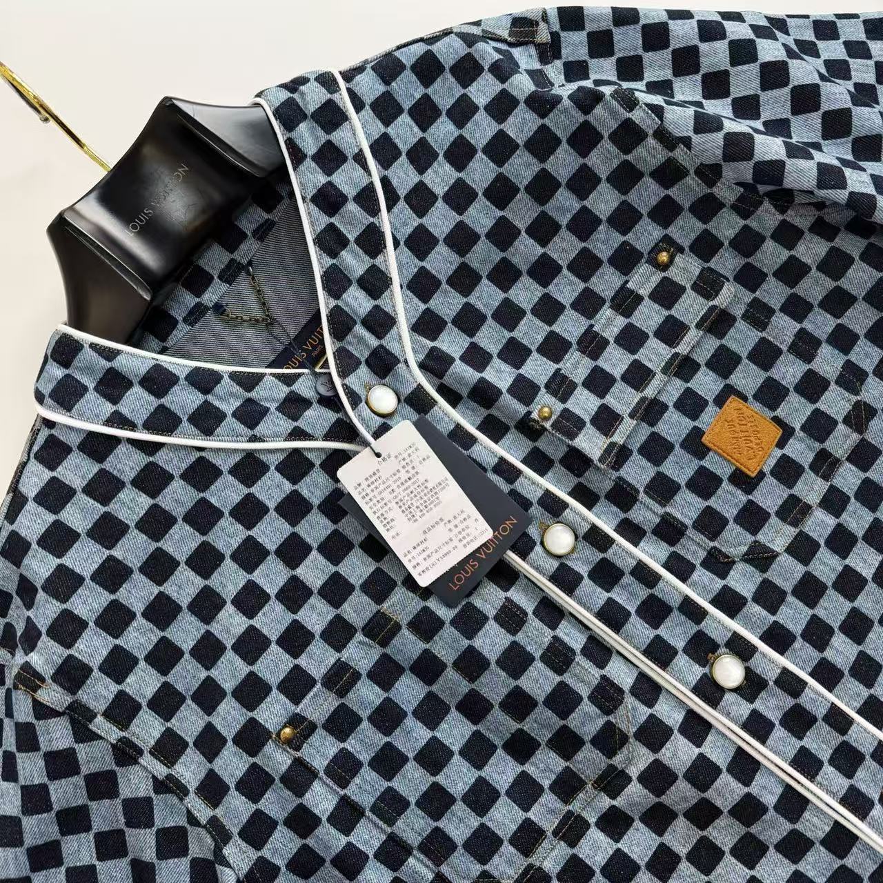 這件襯衫的材質真的非常講究!它使用了獨家訂製的棋盤格提花丹寧布料,將棋盤格和 3D 提花兩種技術結合,讓面料看起來更有層次感。面料還經過砂洗泛白做舊處理,完美營造出復古的質感,而且手感偏硬挺,還不易起皺!