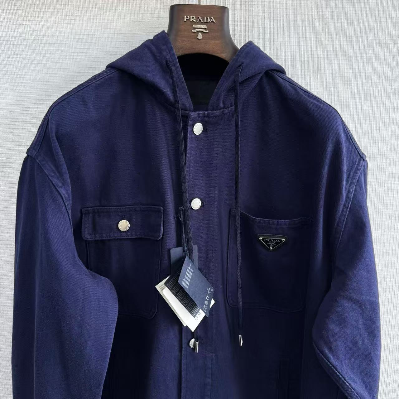 2025早秋新品 P家 三角標做舊連帽牛仔夾克