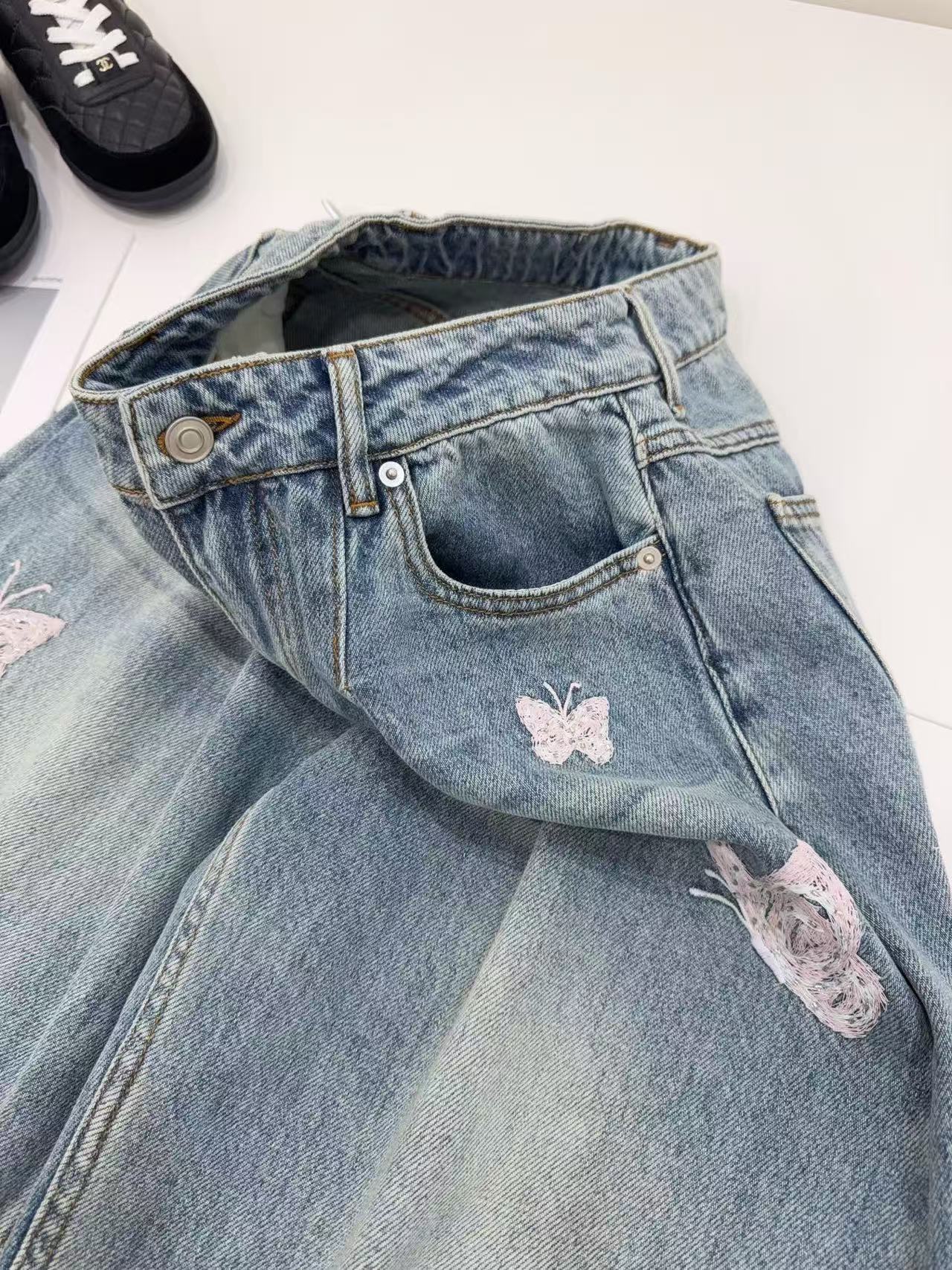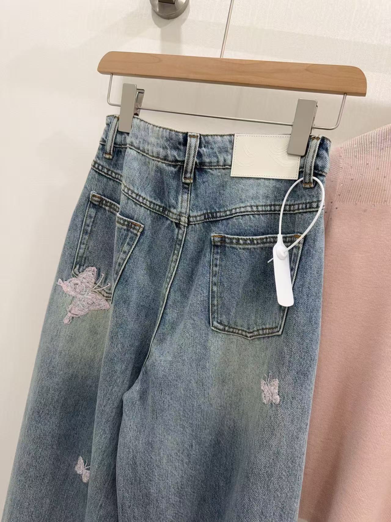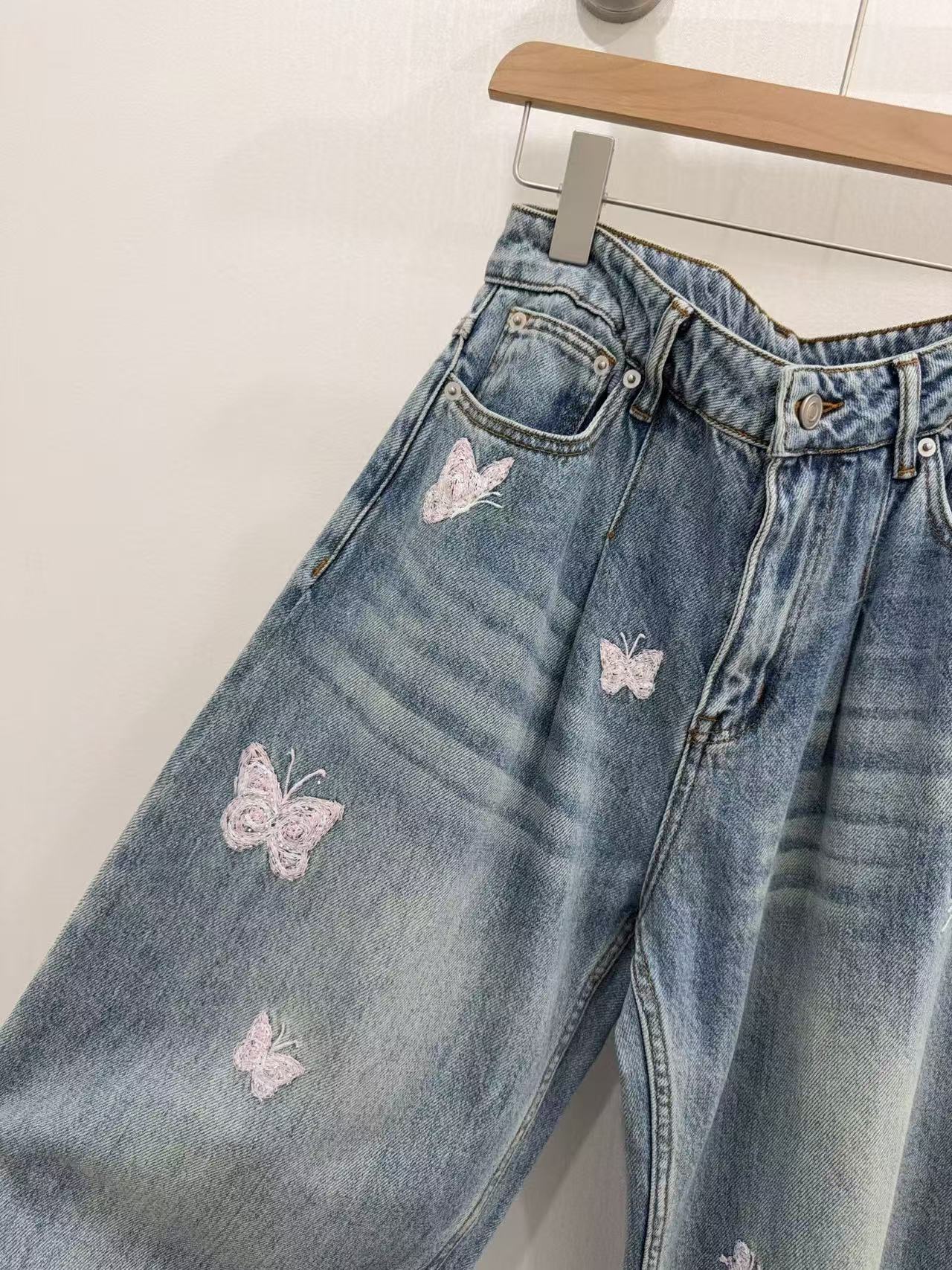 2026早春新品 Ann家 蝴蝶釘珠刺繡彎刀牛仔褲