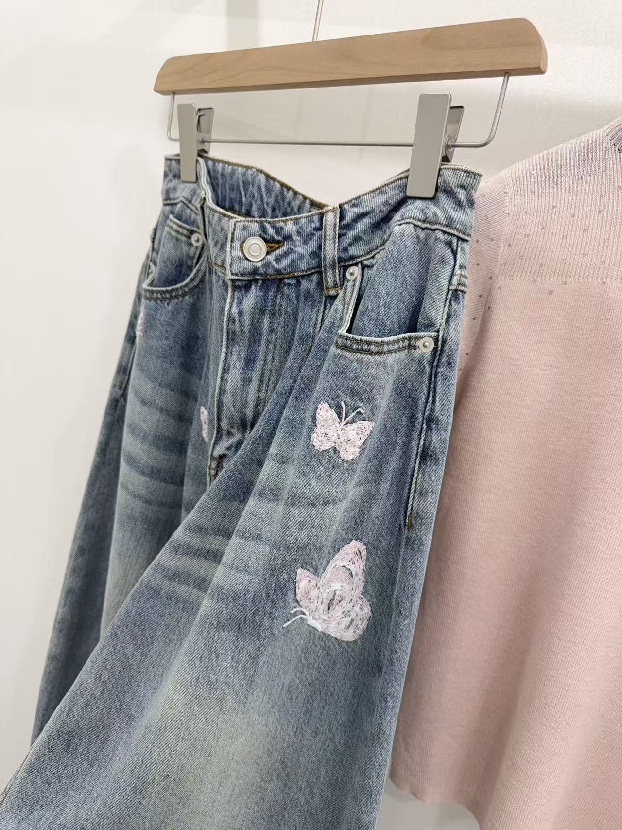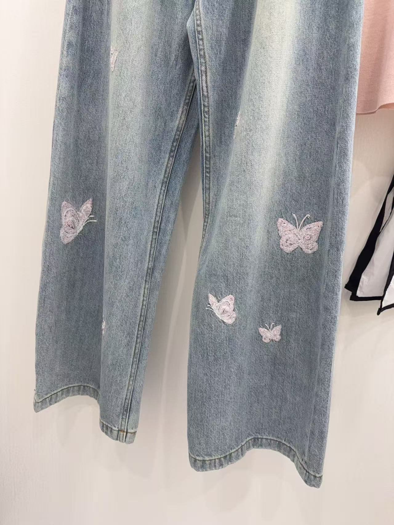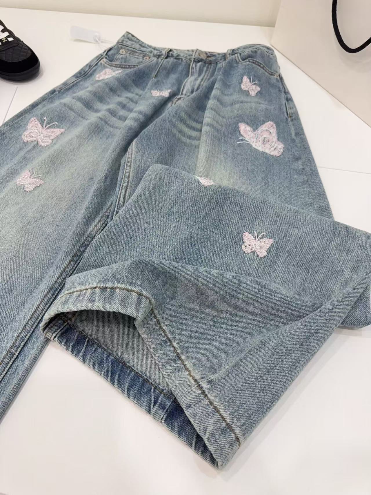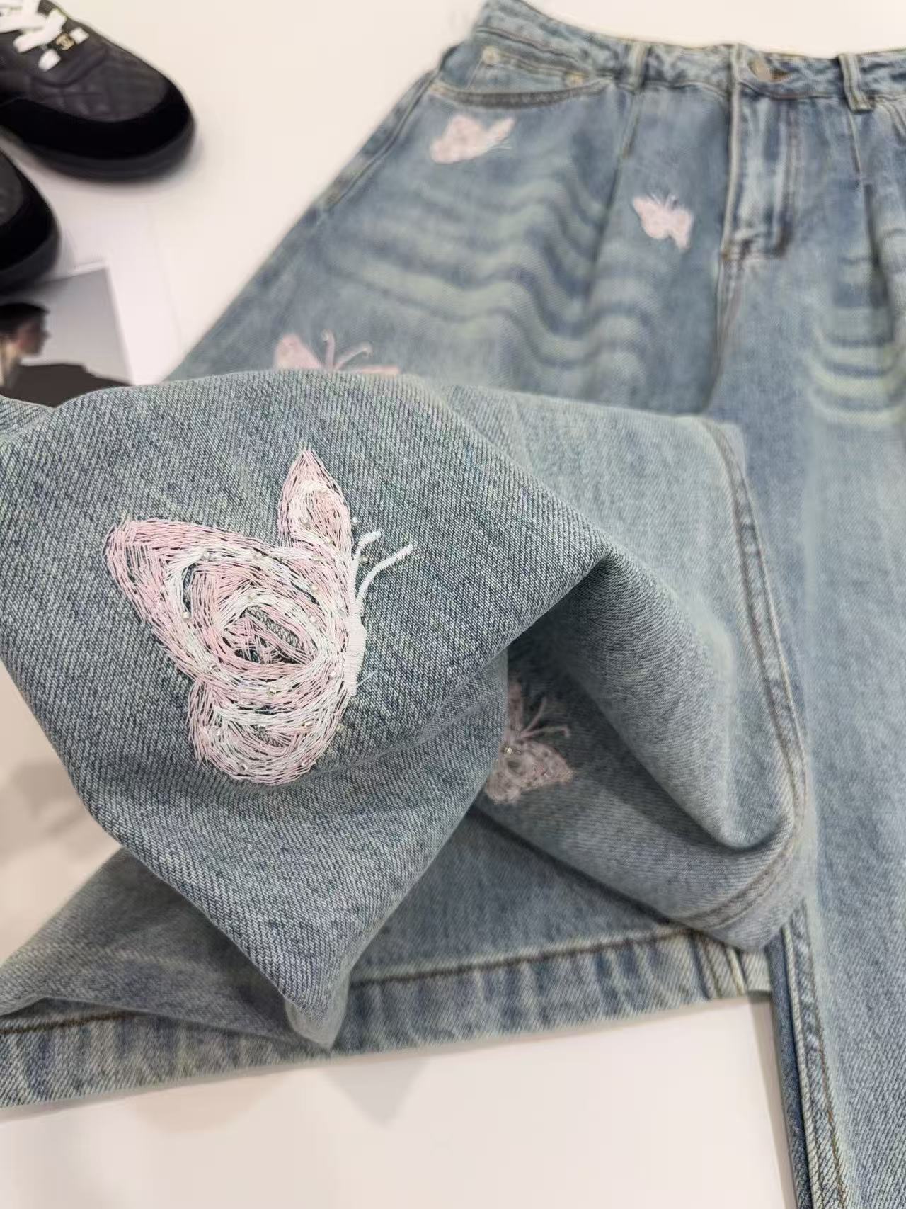 2026早春新品 Ann家 蝴蝶釘珠刺繡彎刀牛仔褲
