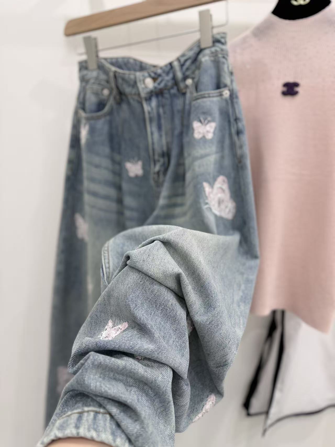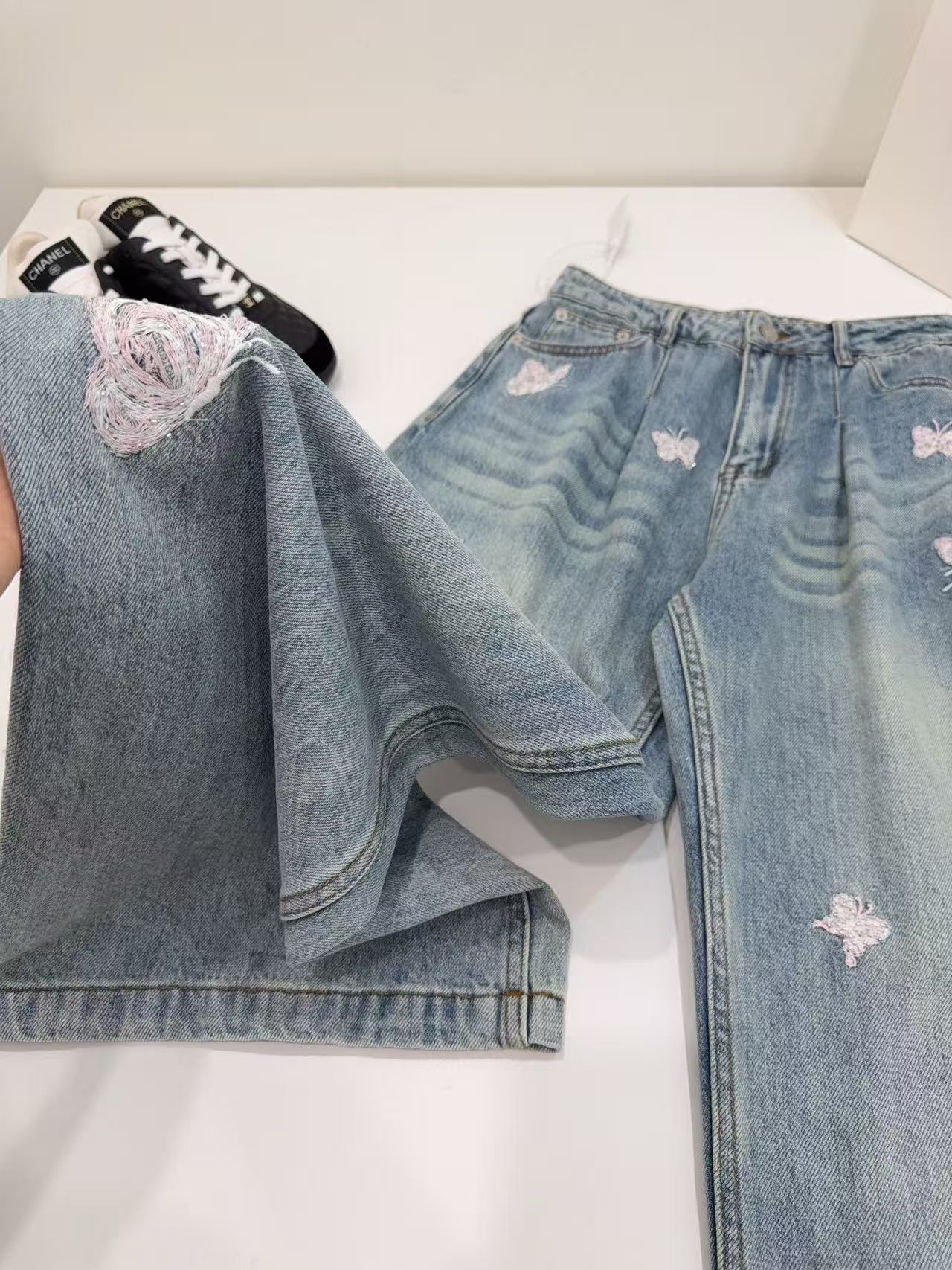 AN 系列:定義當代丹寧美學!解析「蝴蝶釘珠刺繡」彎刀闊腿褲的修飾神力
