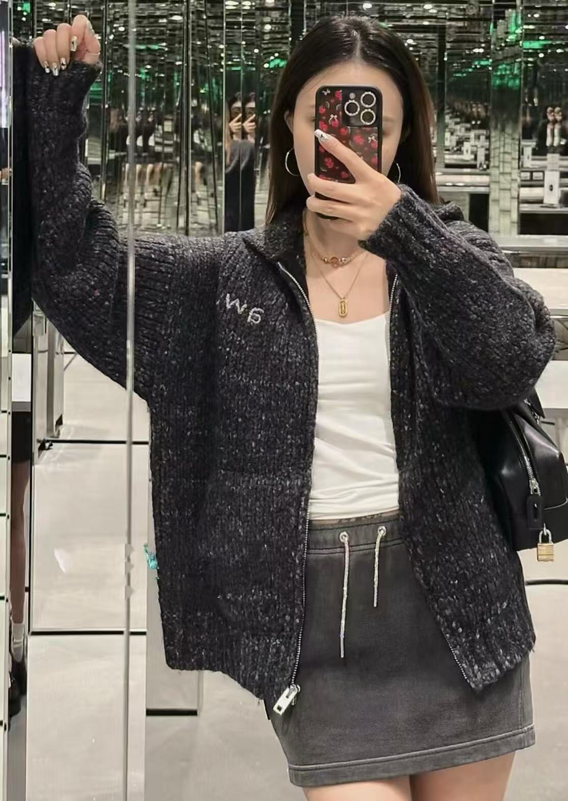2026早春 AW家 深灰粗針拉鏈毛衣