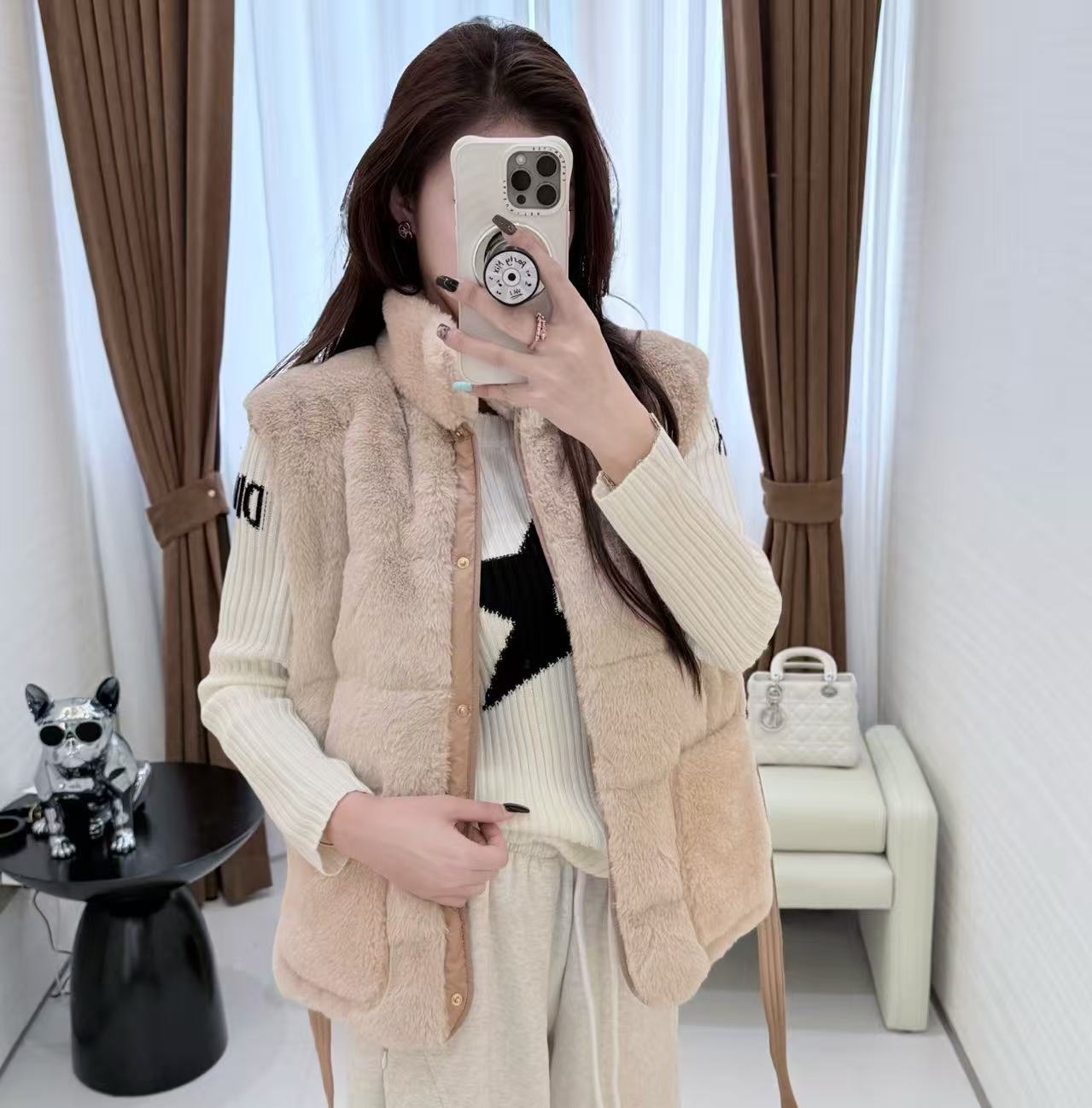 這款背心在選材上極為考究,致力於模擬頂級皮草的觸感與精品的穿著體驗: