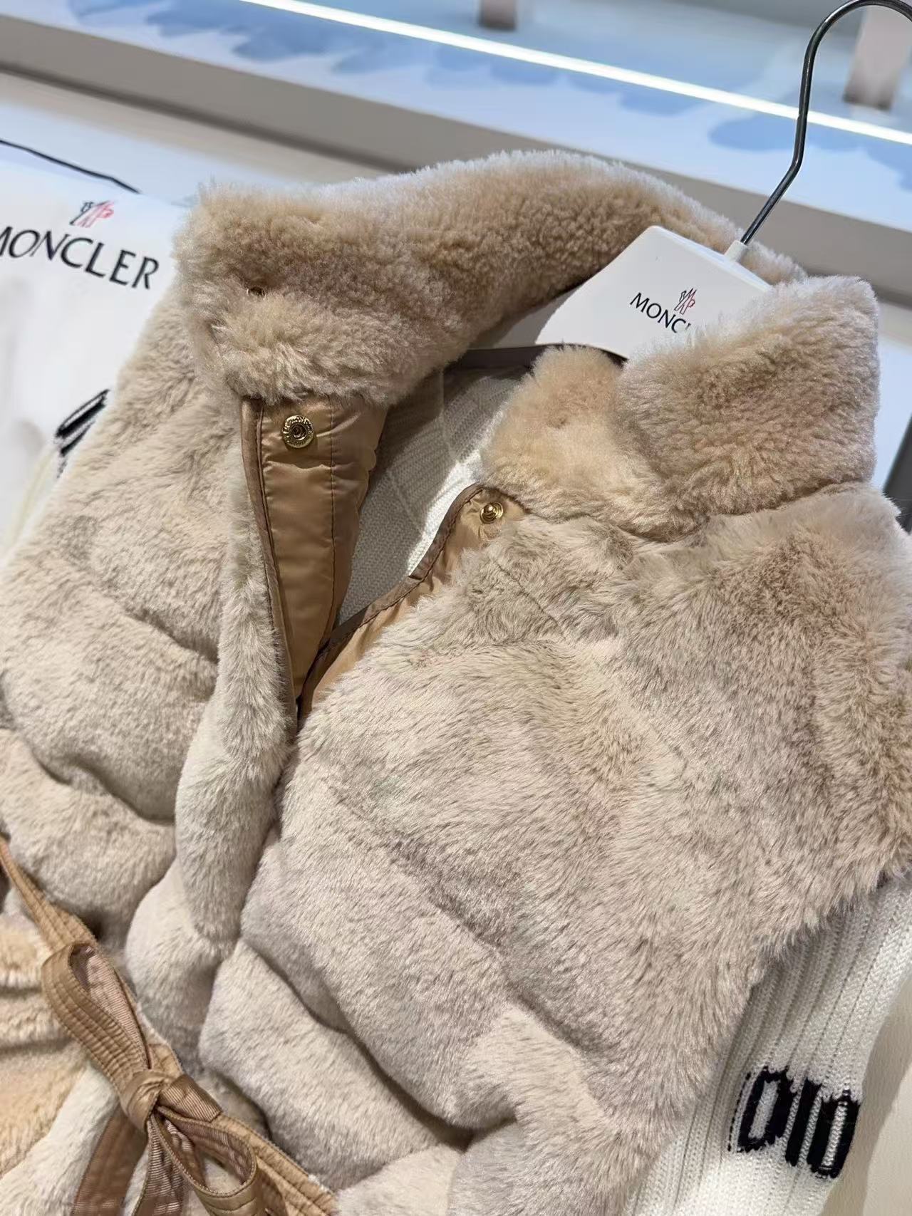 設計上巧妙地將仿皮草的奢華質感與高端羽絨的機能性結合,營造出一種內斂且高級的視覺層次。