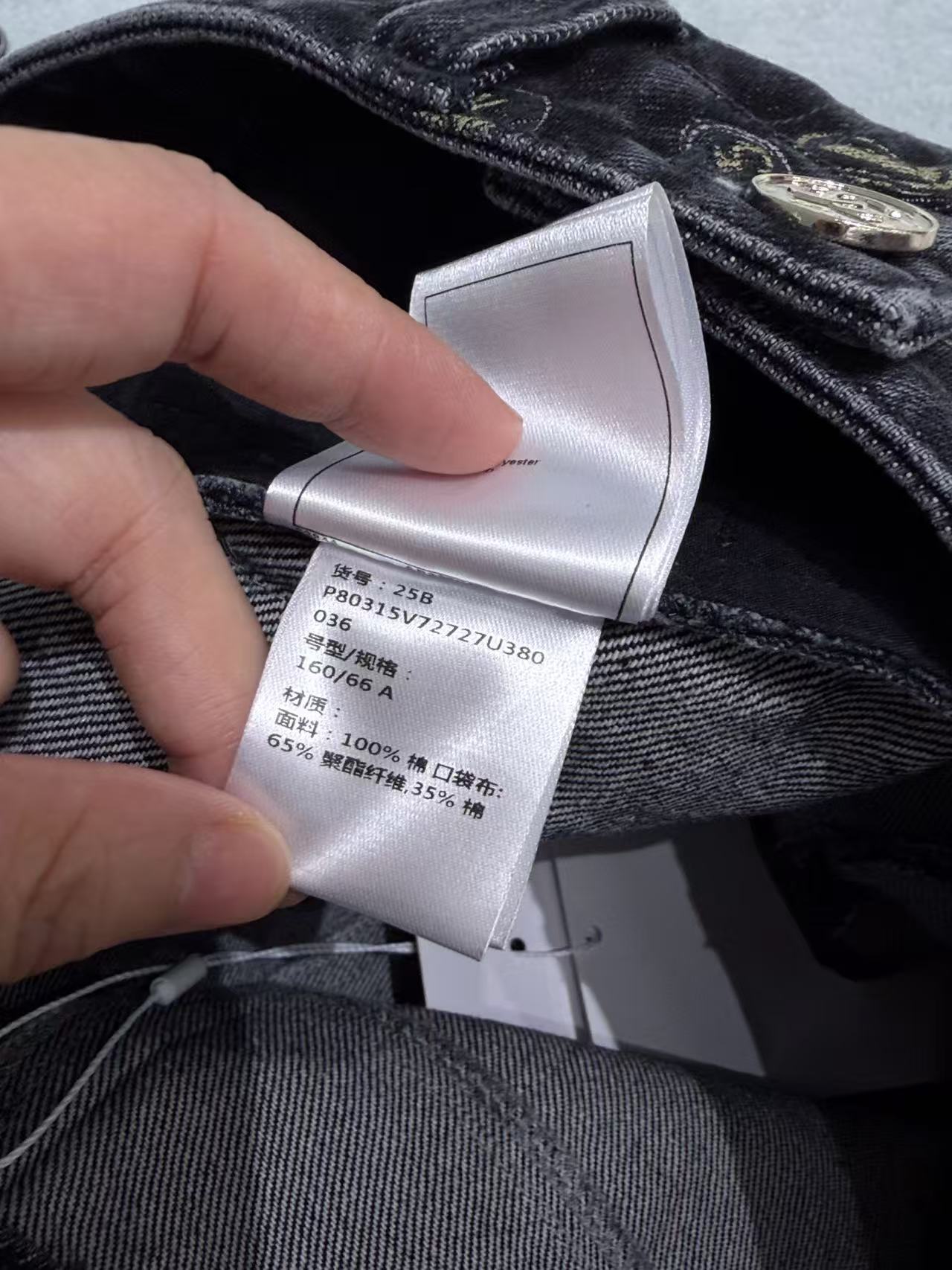 整件褲子佈滿了經典的雙 C 與山茶花元素,卻因為黑灰色的多重做舊工藝,顯得低調帥氣而不失高級感。