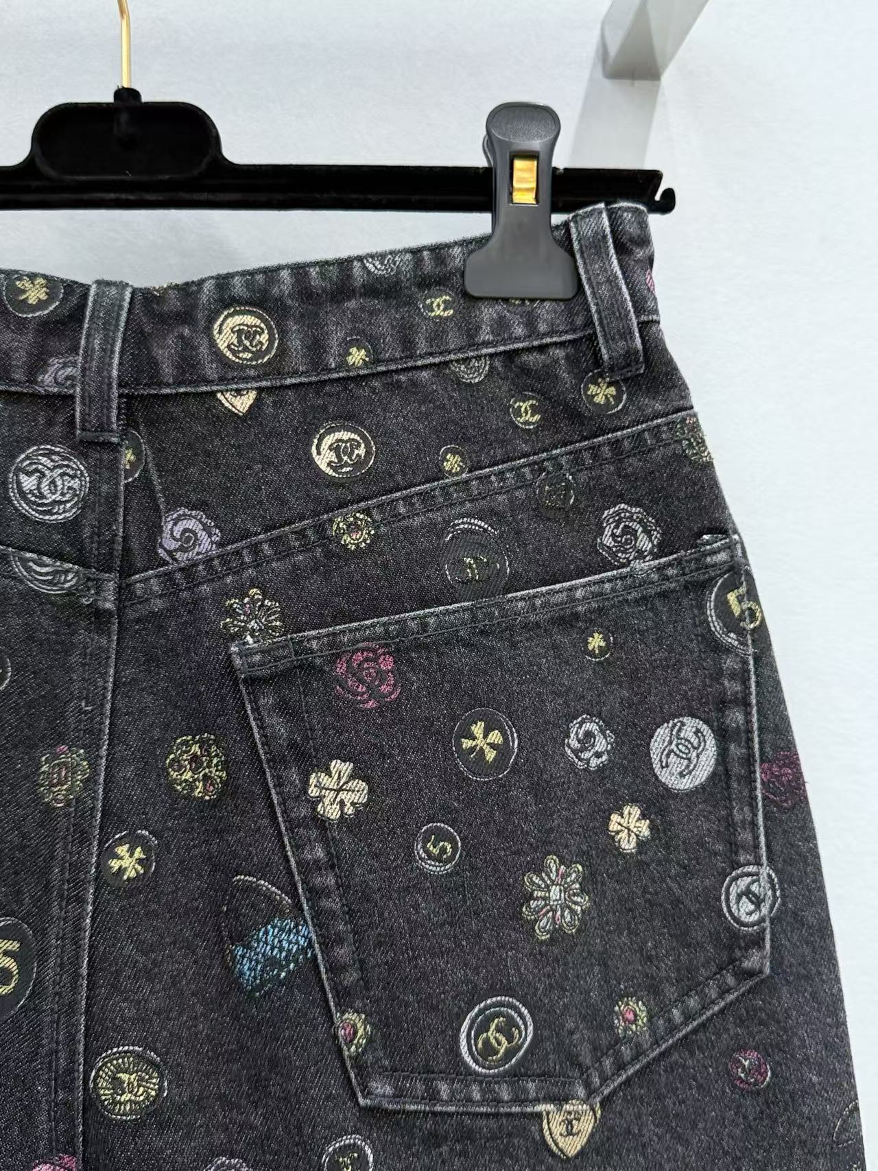 2025早春 C家 山茶花印製牛仔短褲