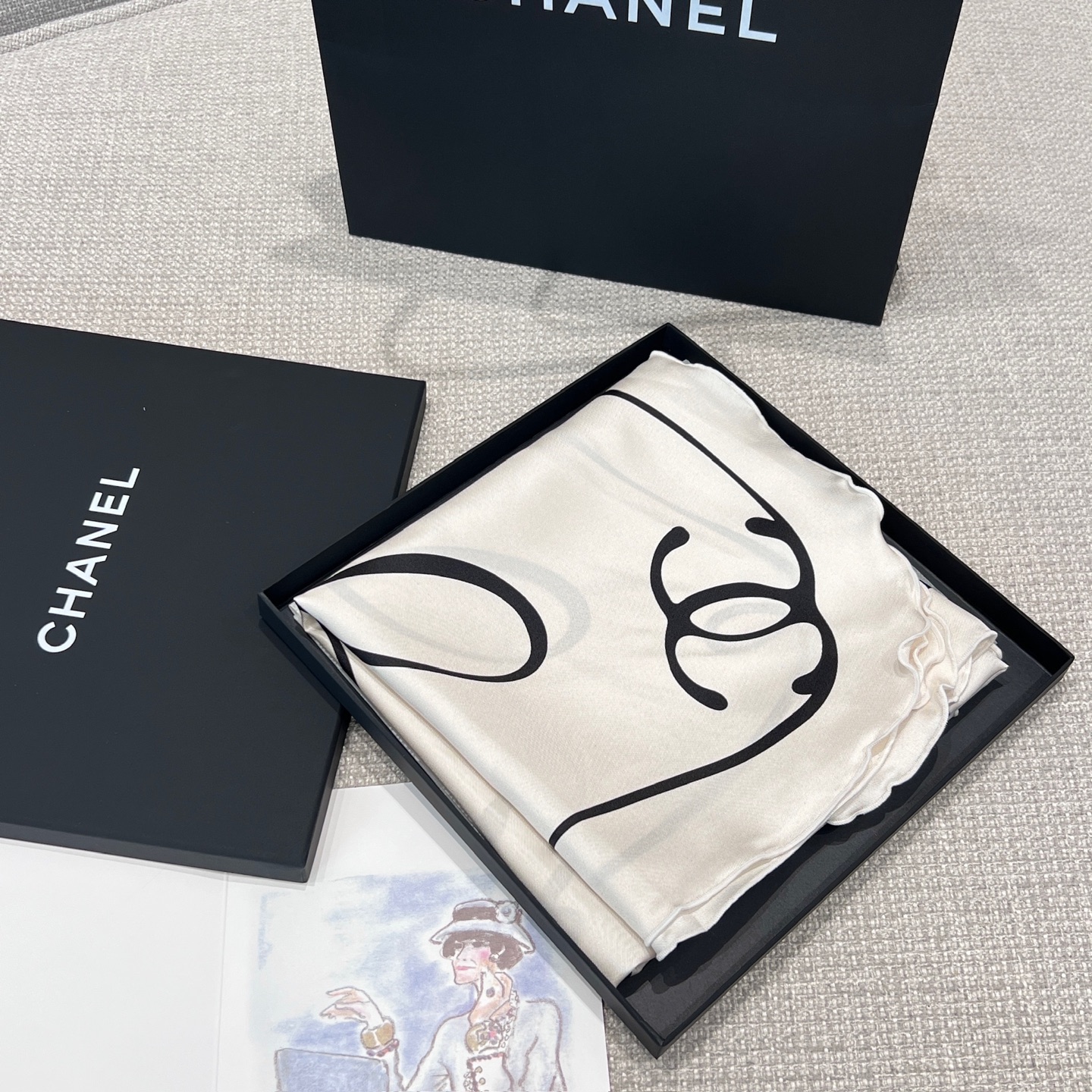 整體以手寫感字母環繞排列,中間搭配經典雙C標誌,視覺上很有層次,但不會過於張揚,剛剛好的時髦感。