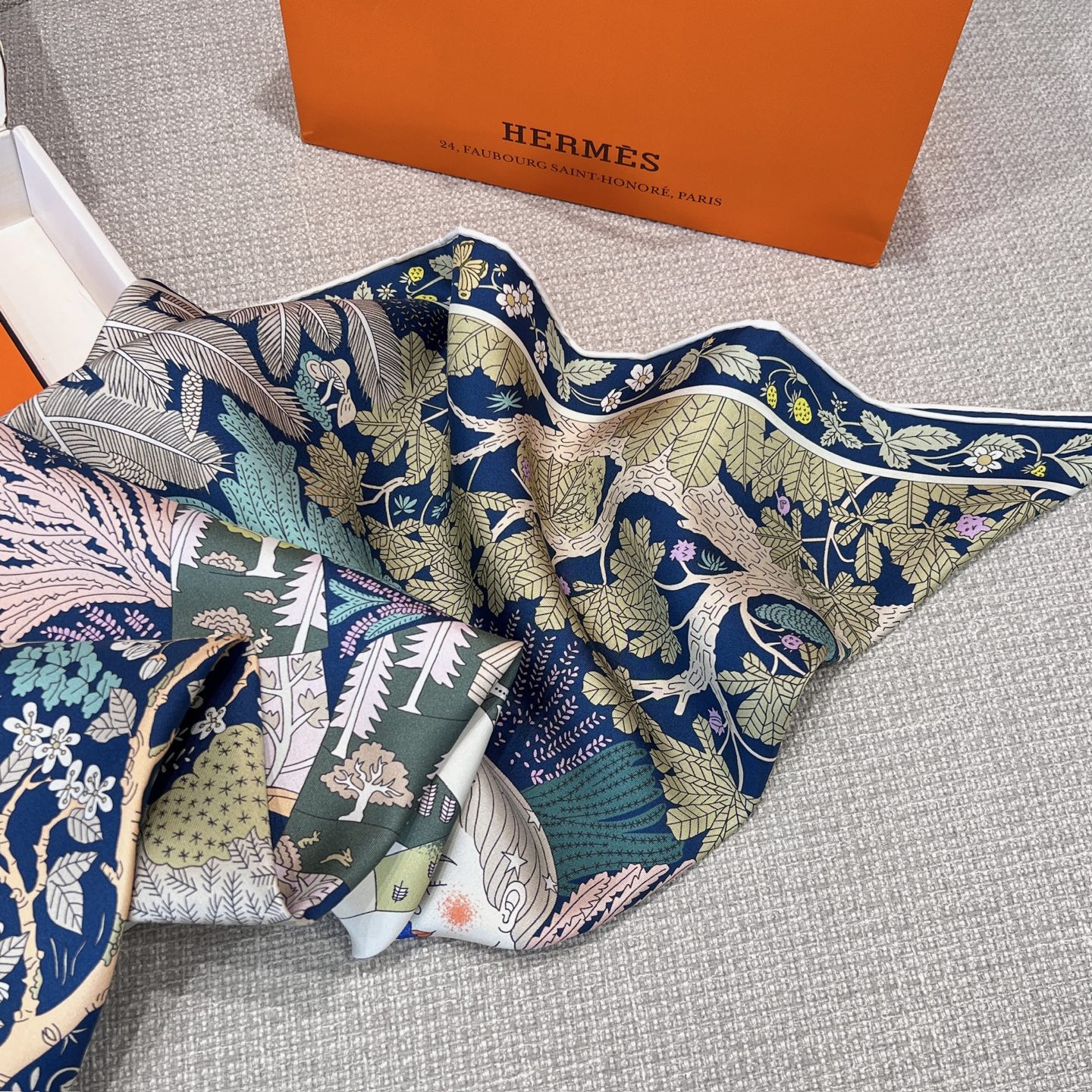 斜紋真絲本身就以柔軟、滑順又不失挺度著稱,垂墜感極佳,無論是繫在頸間、披在肩上,或作為包款裝飾,都能自然展現優雅線條。