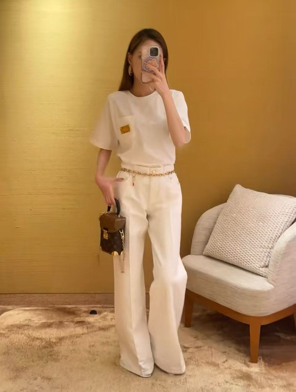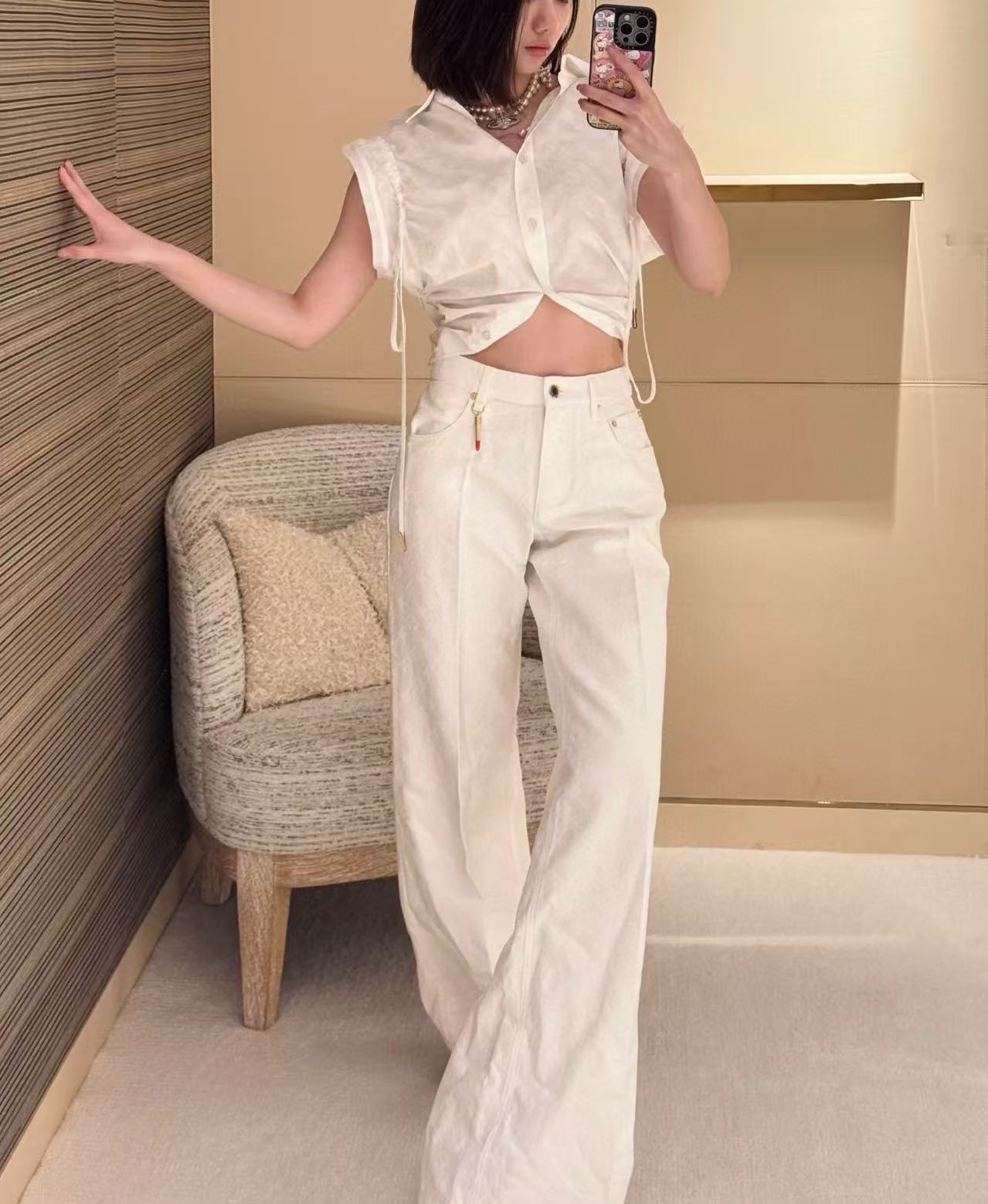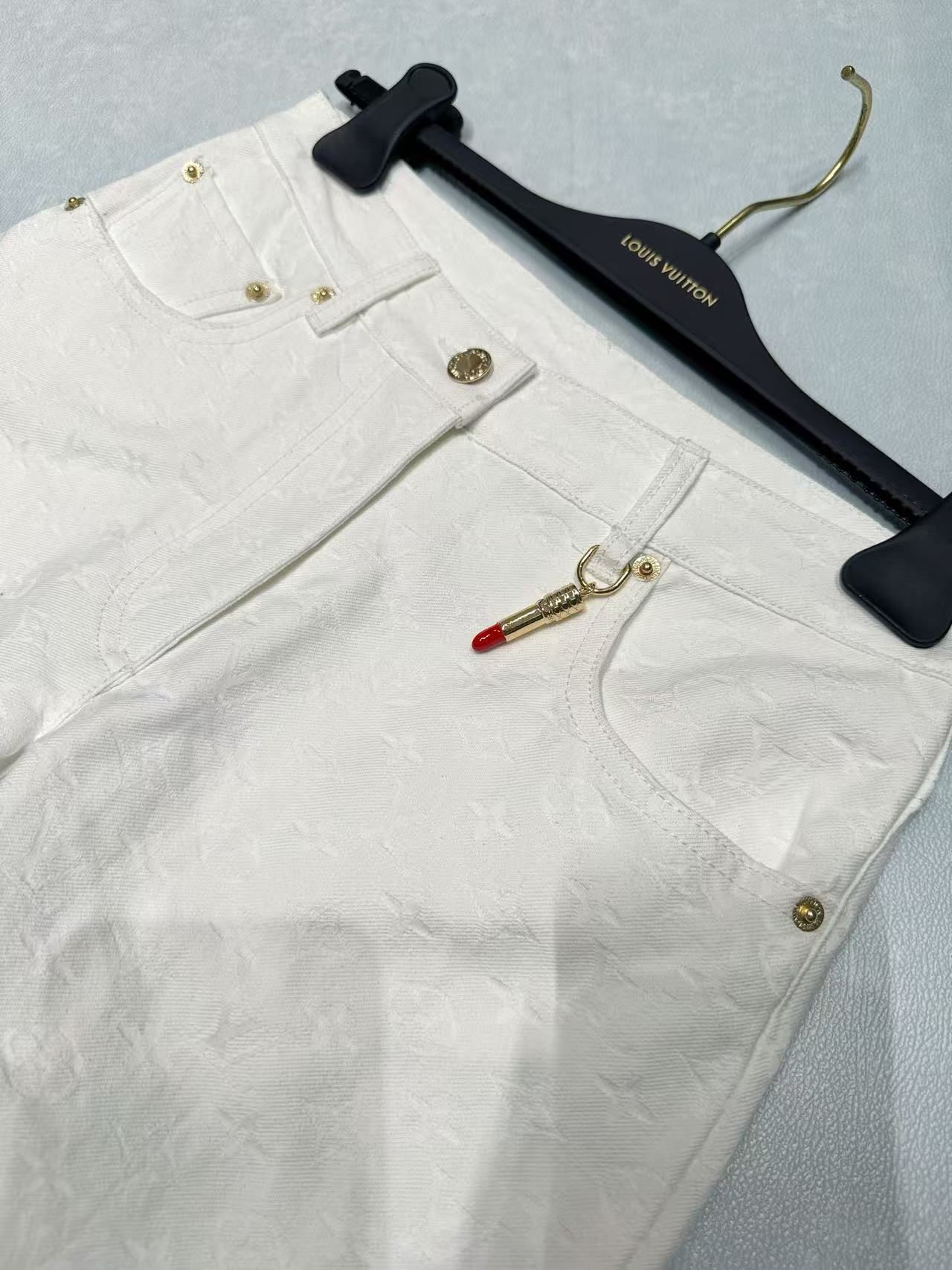 2025早秋 L家 白色滿版壓花牛仔褲,低調奢華的時尚單品!