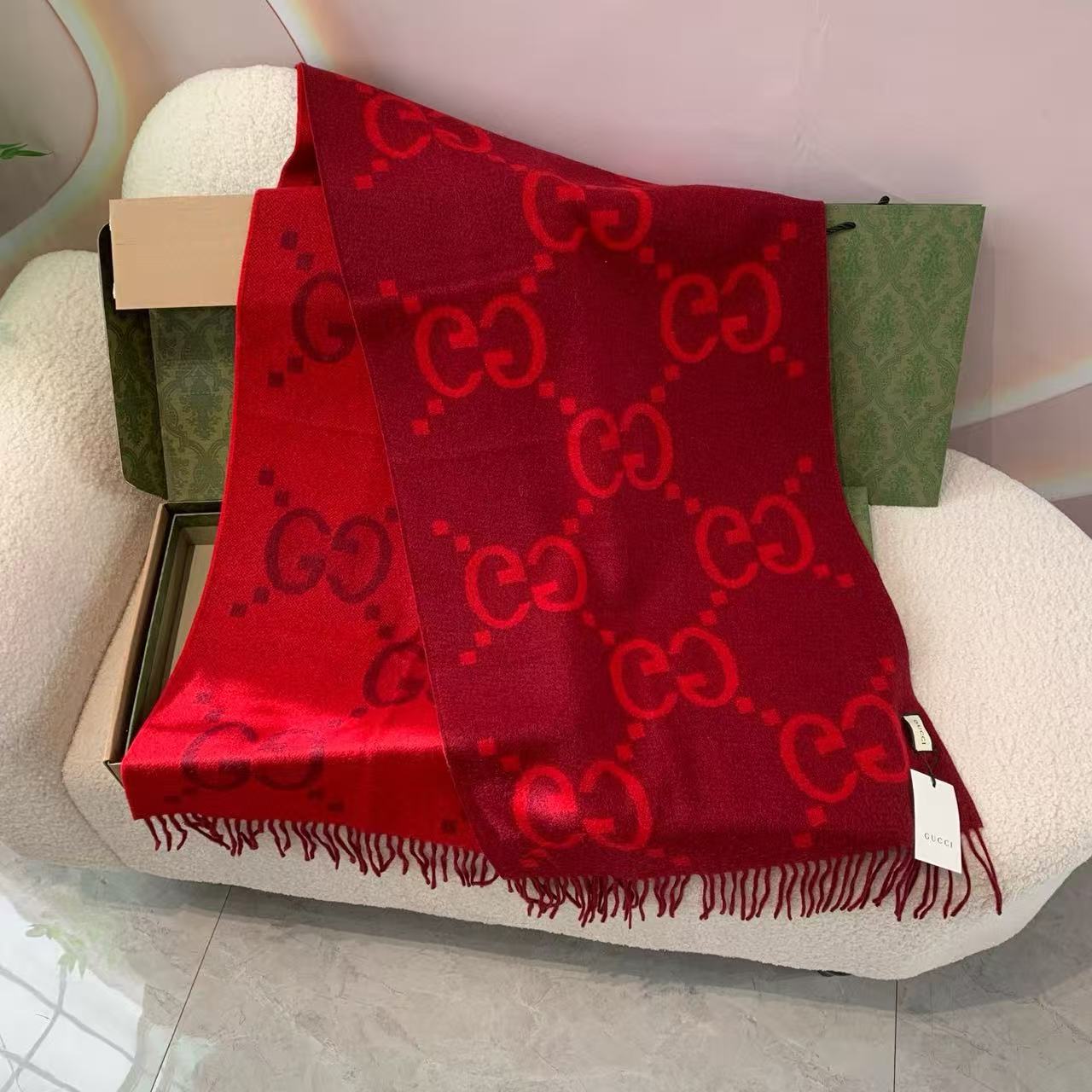 這根本是「把專櫃最貴那條直接搬回家」的夢幻神器,45×200cm超大尺寸可披可圍,一圍上去整個人從台北變米蘭名媛,雙面不同色大G提花,隨手一翻就是兩種風格,正紅直接戳爆新年運勢,男女通殺,過年走春、旅遊出差、日常凹造型全場最佳配角!