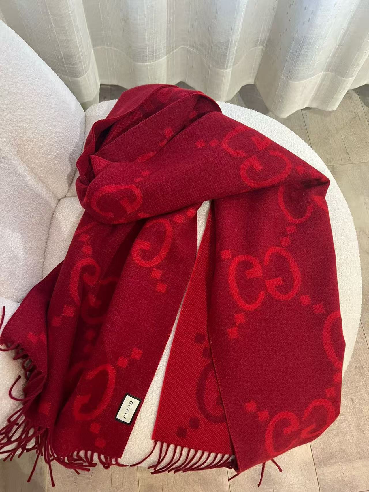 最瘋狂的當然是那「雙面大G提花」+「45×200cm巨型尺寸」!披在肩上像穿了件高級羊絨披肩,貴氣直接從脖子噴出來~